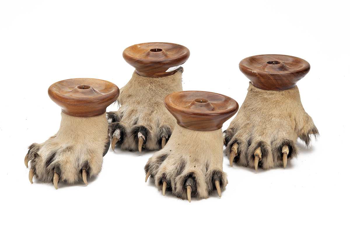 FOUR AFRICAN LIONS FEET CANDLE HOLDERS, 2 foot by two foot