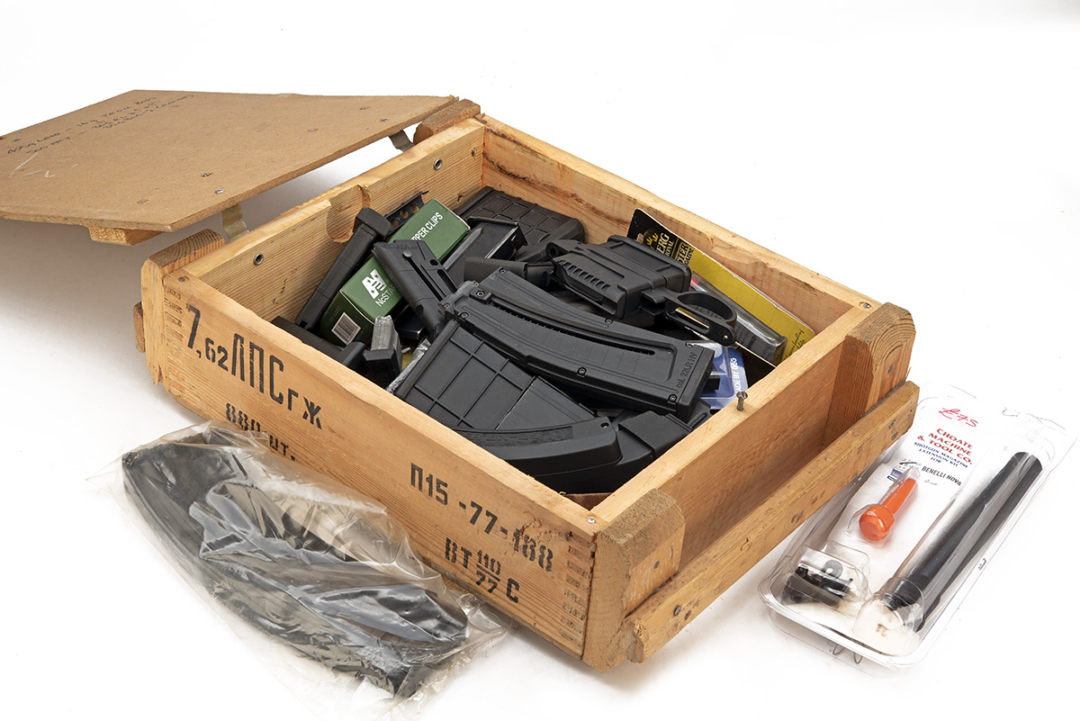 A QUANTITY OF APPROX. 40 USED AND UNUSED VARIOUS PISTOL AND RIFLE MAGAZINES, comprising of parker-hale .223, ai .308cz .22 l.r., brno 'mod 2' .22, 702 plinkster 10 round .22, issc .22 extended, original ai .308, ruger .308, mossberg 'number 293M', .22 GSG 1911, Anschutz l.r., Remington mod 700 .204/.223 Rem, double sided Ruger 10/22 banana magazine, and a number of others