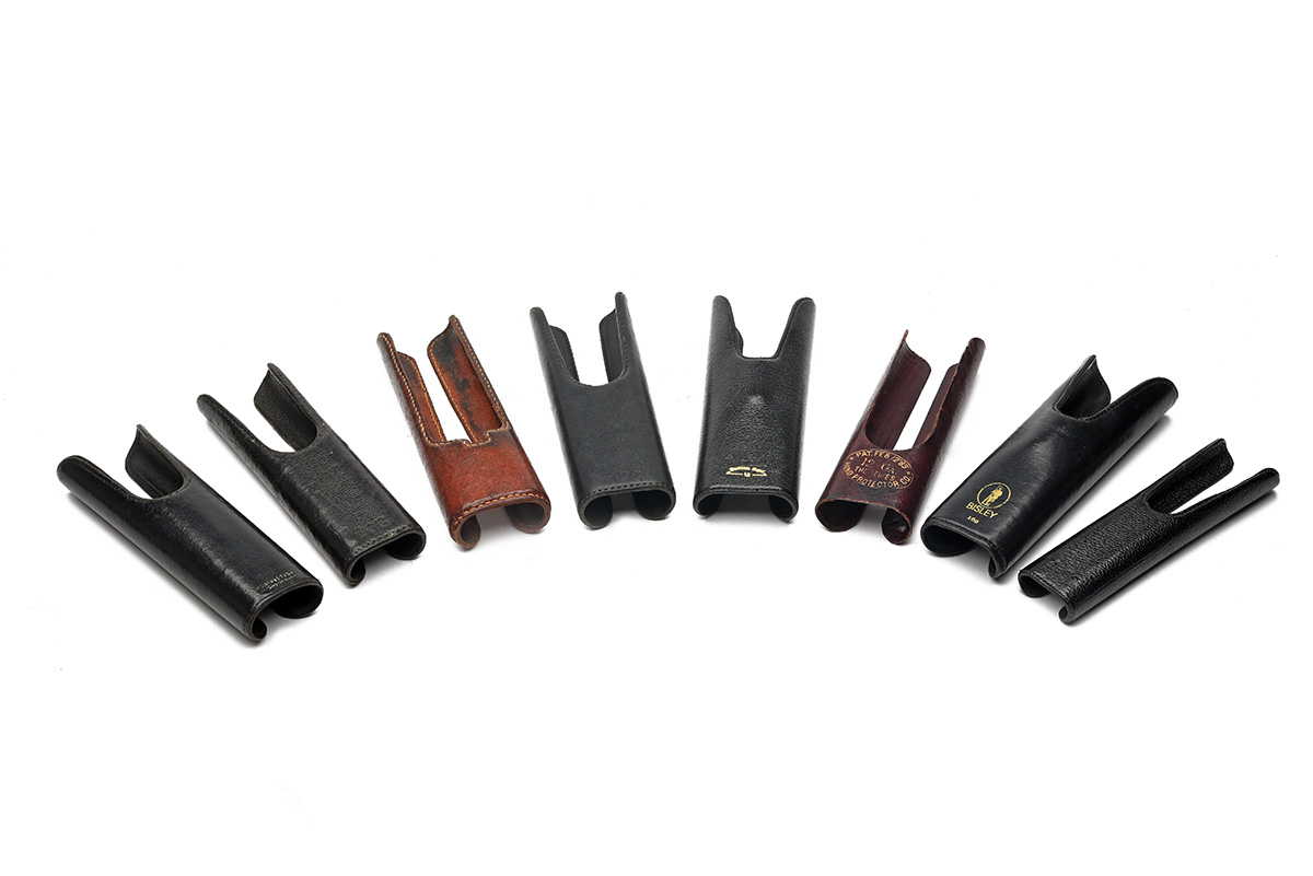 EIGHT LEATHER SIDE BY SIDE HAND GUARDS OF VARIOUS BORE SIZES, 8