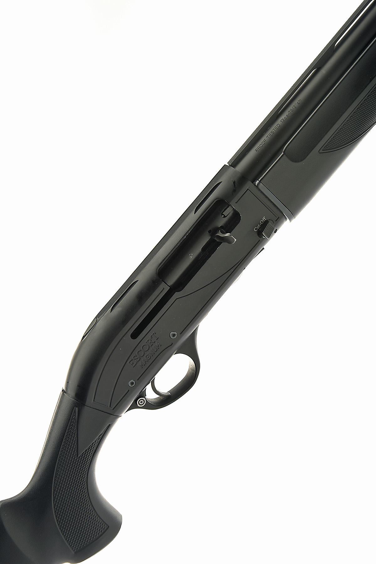 HATSAN 12-BORE (3IN. 'ESCORT MAGNUM' SEMI-AUTO SHOTGUN, serial no. 384717, circa 2011, restricted magazine, 26 3/4in. nitro barrels (high performance steel shot), with 7mm ventilated matt rib, 3in. chamber, multichoke (with spares), manual push-button safety, magazine cut-off switch, 14 3/4in. synthetic pistolgrip stock including ventilated rubber recoil pad, in its makers carton