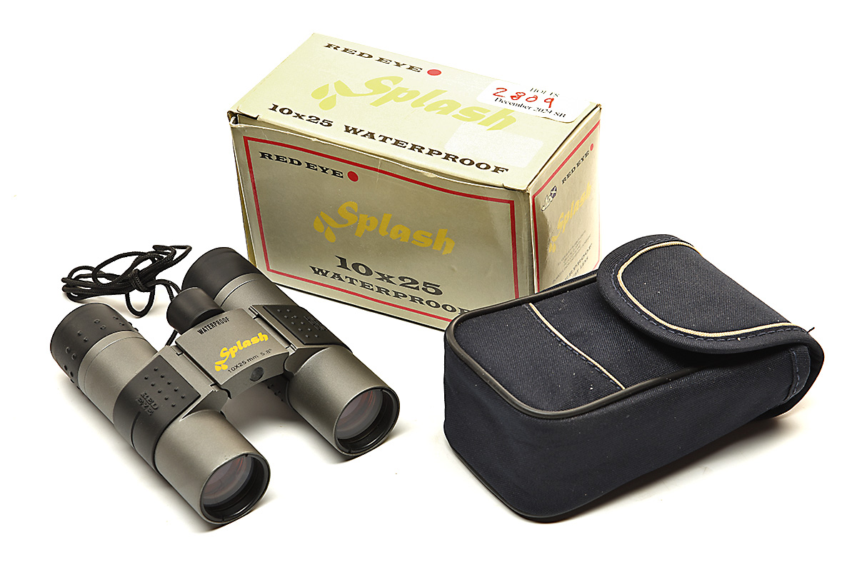 UNUSED 'REDEYE SPLASH' 10X25 BINOCULARS IN BOX, includes instructions and carry case in original box, untested