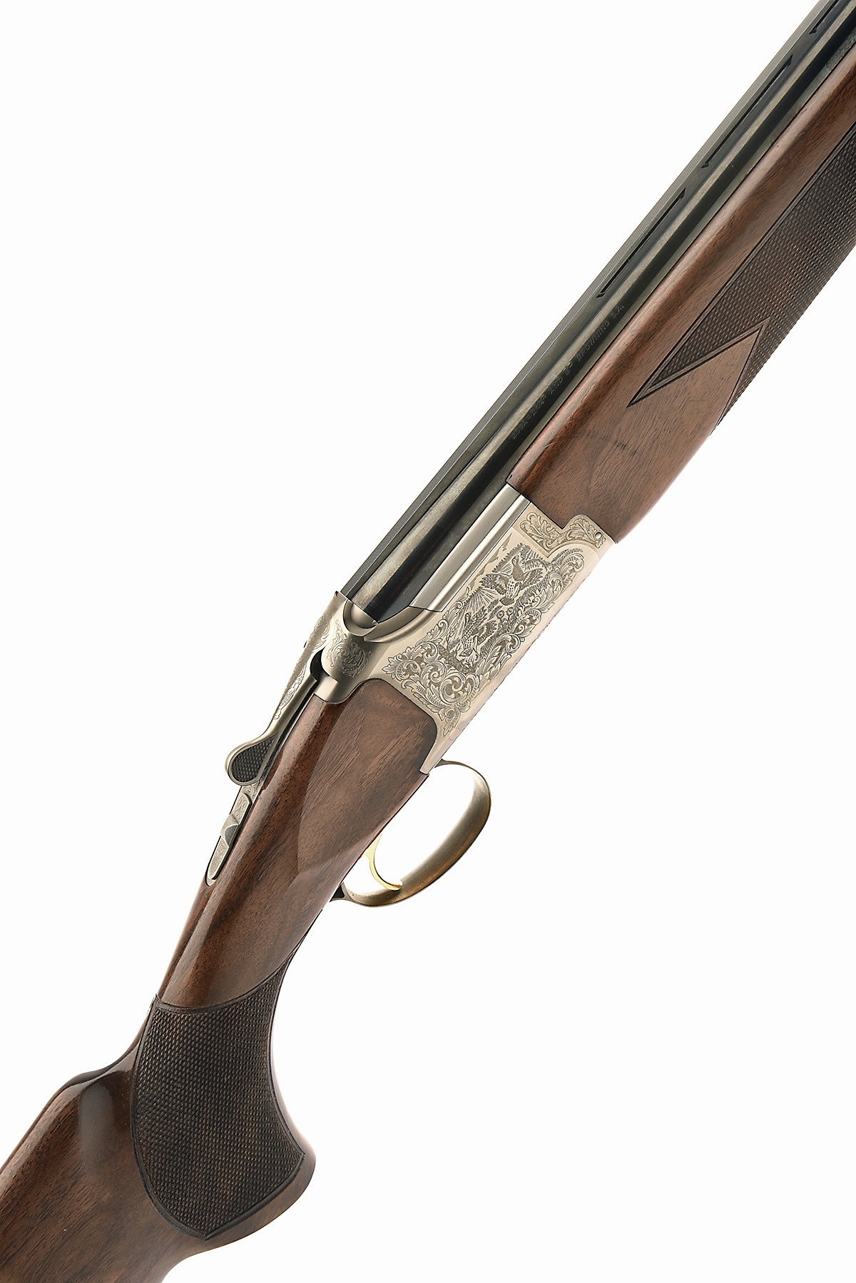 BROWNING S.A. 20-BORE (3IN.) '525' SINGLE-TRIGGER OVER AND UNDER EJECTOR, serial no. 67288MP, for 2008, 28in. high-performance steel-shot proved nitro barrels with 6mm ventilated matt top-rib, 3in. chambers, multichoke (with spares), hold-open toplever, manual safety with integral barrel-selector switch, gold washed trigger, acanthus scroll engraving surrounding game scene vignettes of pheasant, partridge and woodcock, satin finish, 14 3/4in. figured pistolgrip stock including trademark buttplate, weight 6lb. 10oz., in its makers universal ABS case