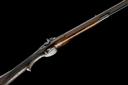 circa 1852, with re-browned octagonal 27in. multi-groove rifled barrel (shallow pitting on muzzle exterior), dove-tailed fore-sight, standing notch rear-sight with additional folding leaf, the top-flat at breech signed 'JOSEPH LANG, HAYMARKET, LONDON', colour hardened breech block with engraved band and platinum line, the top engraved with a stag's head, border and scroll engraved top-tang, border, scroll and gamescene engraved bar-action colour hardened lock featuring a seated stag and signed 'I. LANG', engraved dolphin-headed hammer with sliding safe, walnut half-stock with raised cheek-piece and chequered wrist (cracked and repaired), iron heel-plate, the top-spur engraved with a lion, further big cats engraved to the trigger guard bow and finial, single set trigger and ebony ramrod