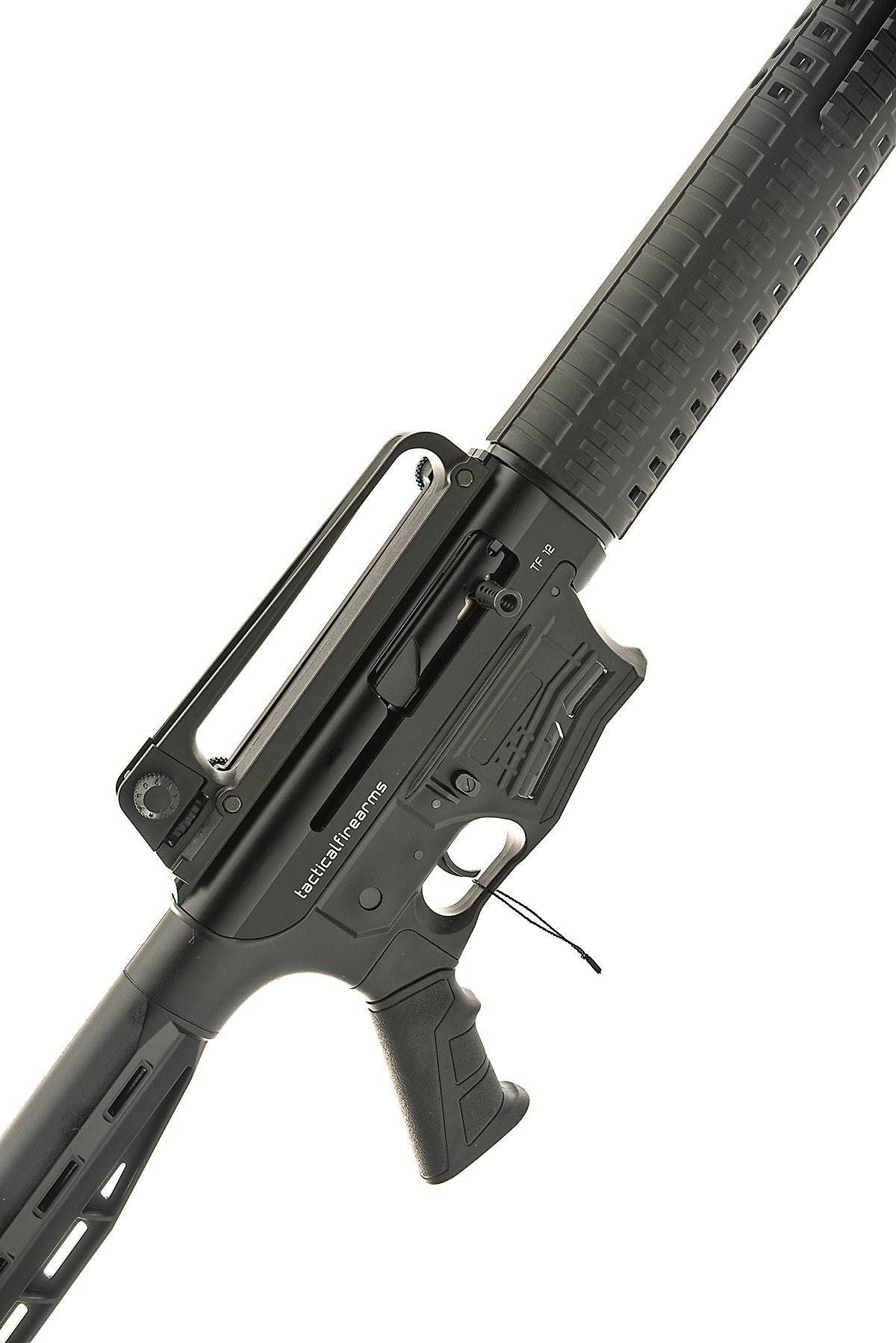 AN F.A.C. TACTICAL FIREARMS 12-BORE (3IN.) 'MODEL TF 12' SEMI-AUTO SHOTGUN, serial no. 18J-3004, circa 2018, 24in. nitro barrel (high-performance steel shot), raised high-visibility fore-sight, 3in. chamber, multichoke (no spares, with muzzle break), receiver fitted with a detachable carry handle with integral rear sight, manual safety, bolt-release catch, detachable box magazine (with one spare), synthetic pistolgrip stock with adjustable comb, 14in. pull including rubber recoil pad, fore-end with underslung picatinny rail, sling swivels, in its ABS case