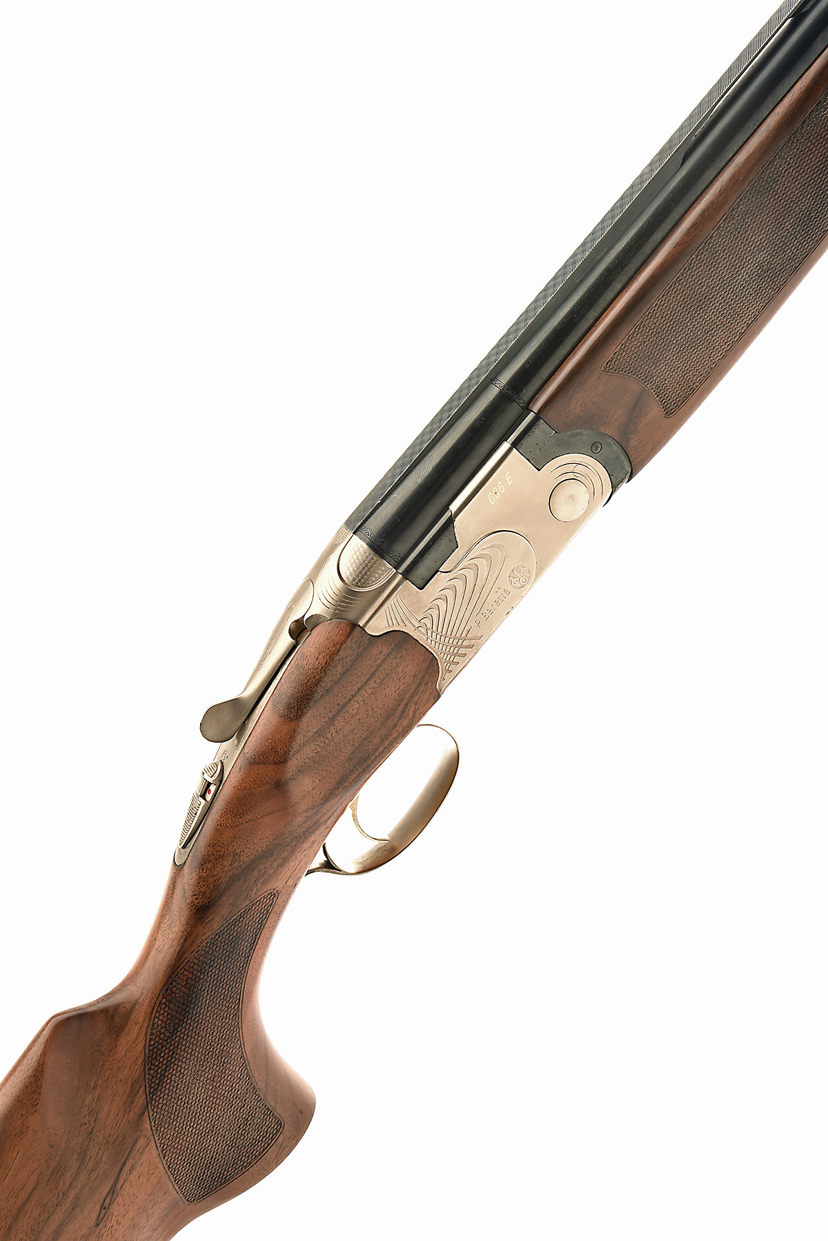 P. BERETTA 12-BORE (3IN.) '686E SPORTING' SINGLE-TRIGGER OVER AND UNDER EJECTOR, serial no. P53874B, for 2003, 28in. nitro barrels with 9mm ventilated matt top-rib, 3in. chambers, multichoke (with spares), hold-open toplever, automatic safety with integral barrel-selector switch, gold-washed trigger, satin finish, 14 3/4in. pistolgrip stock including rubber recoil pad, weight 7lb. 13oz., in its makers universal ABS case