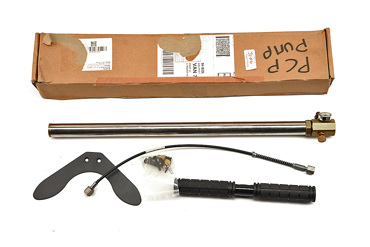 AN UNUSED PCP AIR RIFLE PUMP, 8mm quick connector, 0-40 Mpa gauge range, with replacement O-rings and spare parts