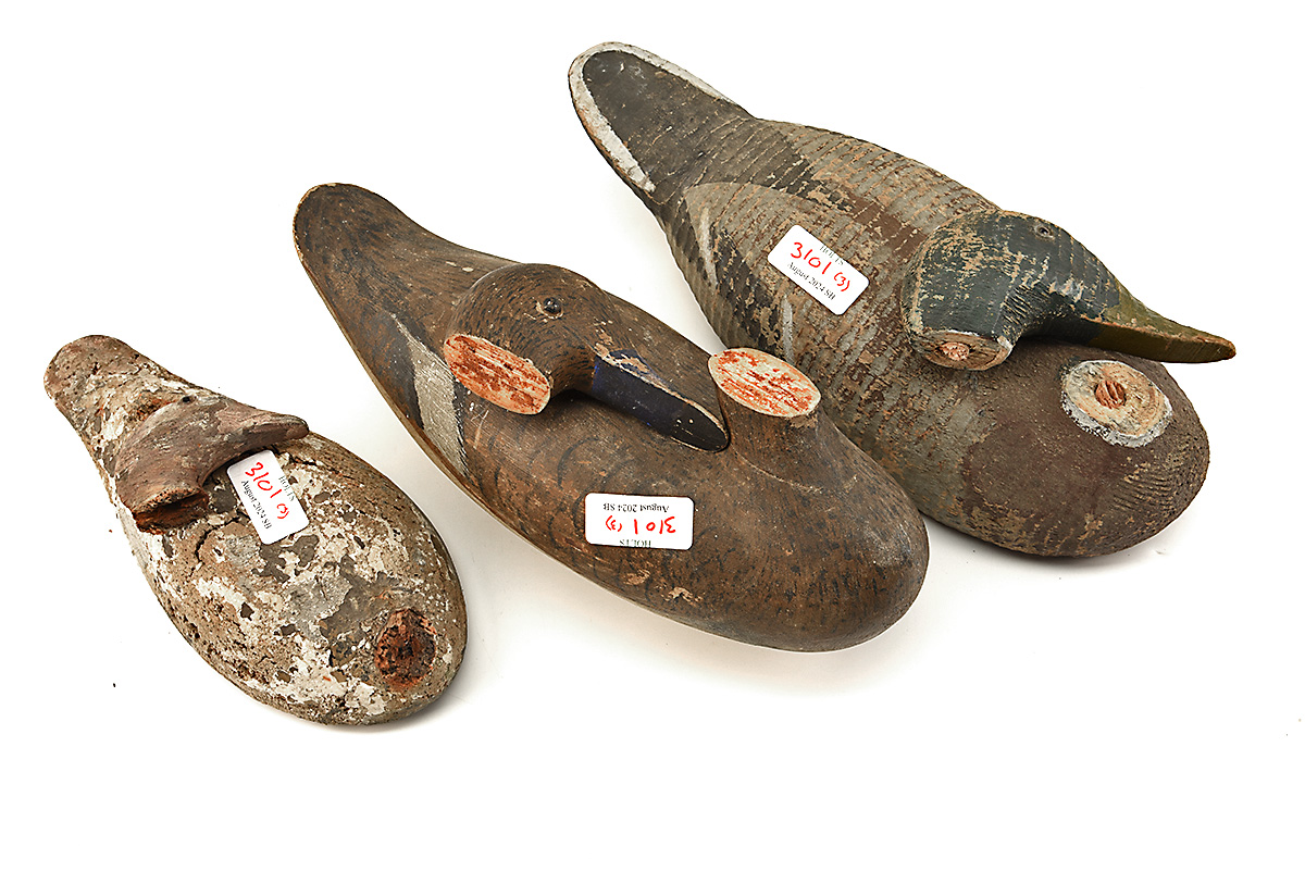 THREE VINTAGE DUCK DECOYS, heads damaged