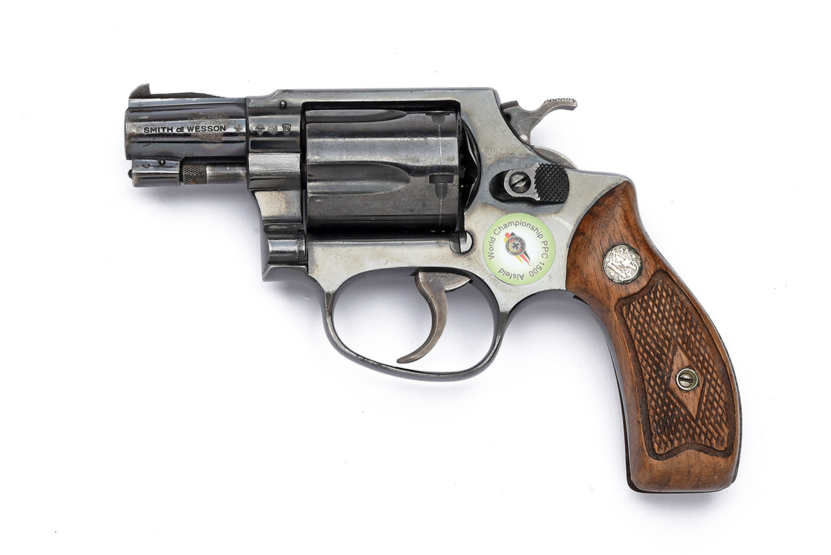 A SMITH & WESSON .38 (SPL) MODEL 36 POCKET-REVOLVER, serial no. 440903, with sighted 1 7/8in. barrel, blued frame with swing-out five-shot fluted cylinder and chequered wood grips