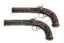 A GOOD CASED PAIR OF 20-BORE PERCUSSION TRAVELLING or CARRIAGE BELT PISTOLS, no visible serial numbers,