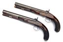 A CASED PAIR OF 46-BORE PERCUSSION SCRATCH-RIFLED TARGET PISTOLS OF DUELLING STYLE, serial numbered 10913,