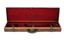 fitted for 30in. barrels, the interior lined with red baize, brass lock (key missing), the lid exterior embossed with 'T. WALSH'