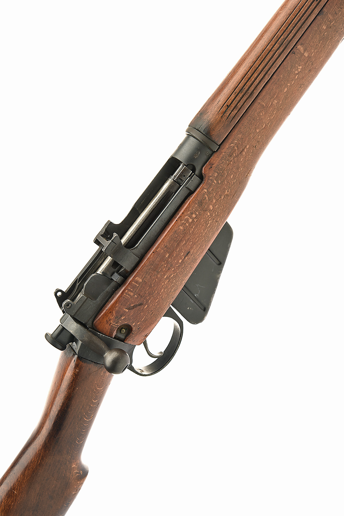 ** LEE ENFIELD .303 (BRIT.) 'NO.4 MKI' BOLT-MAGAZINE SERVICE RIFLE, serial no. B3994 / WR62701, circa 1940, 25in. nitro reproved barrel (in 2024), blade fore-sight (side protectors missing), rear sight removed, manual safety, detachable box magazine, three-quarter length stock, 13 1/4in. pull including brass buttplate
