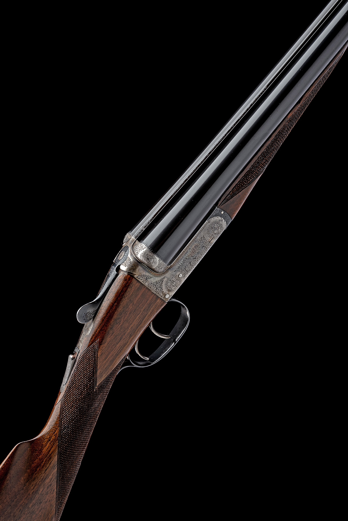 for 1969, 28in, nitro barrels, the rib engraved 'GALLYON & SONS. LTD. CAMBRIDGE. KINGS LYNN. & NORWICH.' and with acanthus scroll detailing at the breech end, 2 3/4in. chambers, bored approx. imp. cyl. and 3/4 choke, automatic safety with inlaid 'SAFE' detail, beaded border, bouquet and acanthus scroll engraving, the underside engraved 'THE COUNTY MODEL.', the toplever and triggerguard engraved with the cornucopiae, retaining traces of original colour-hardening and finish, 15in. stock, weight 6lb. 8oz., in a lightweight canvas case