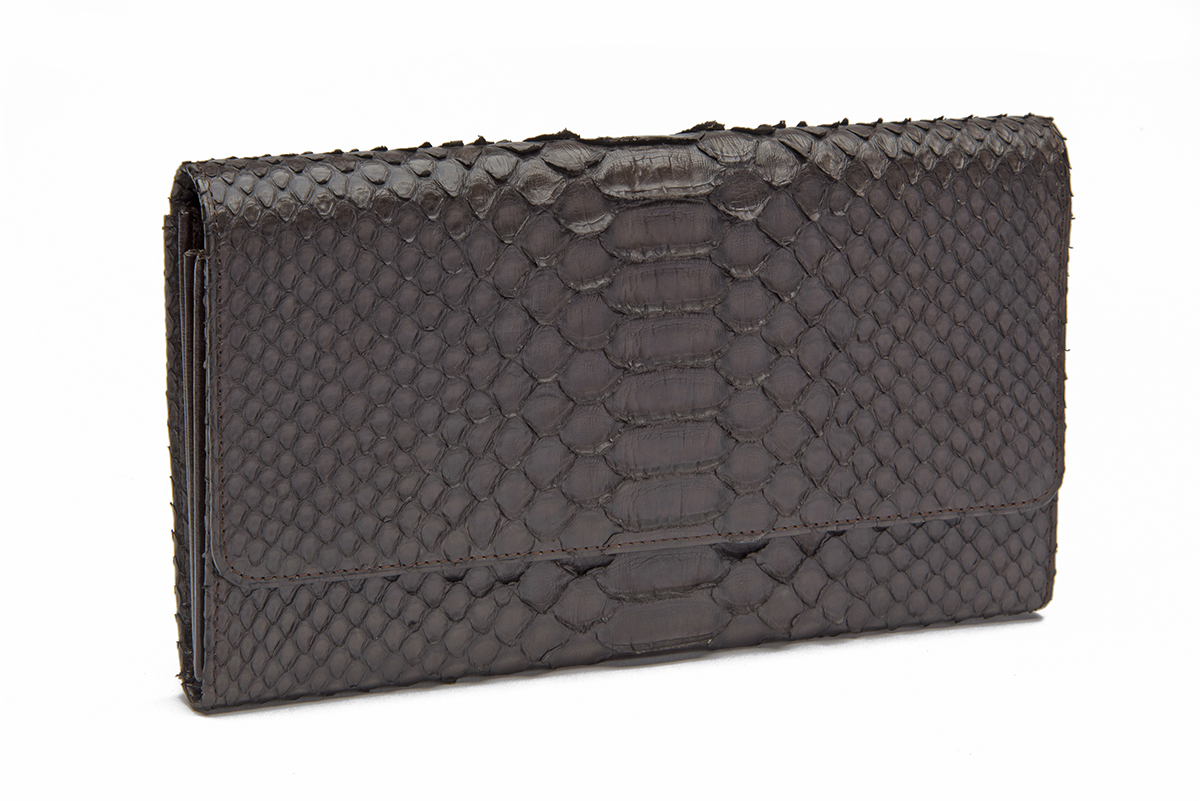 WILLIAM & SON A FLAT OVER PURSE IN CHOCOLATE PYTHON,