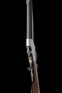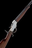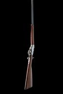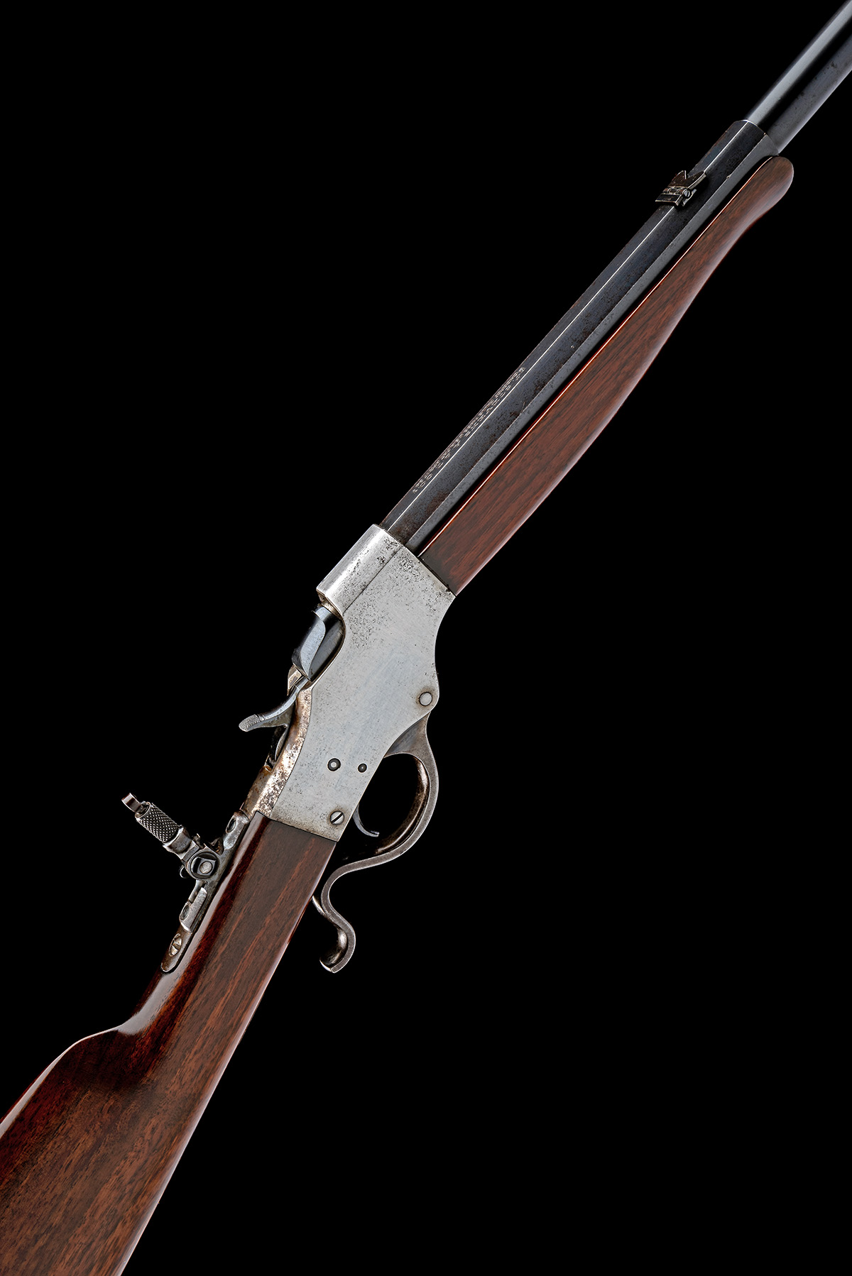 circa 1915, with blued octagonal to round 24in. barrel, folding ring fore-sight, folding twin-blade rear-sight, the top-flat signed 'J. STEVENS A & T CO. CHICOPEE FALLS MASS. USA PAT. APR. 17 94', slab-sided action (the sides cleaned of finish) with under-lever operation and central hammer, period Lyman marked adjustable peep-sight to top-tang, walnut butt-stock and shaped fore-end, good amount of finish except where noted