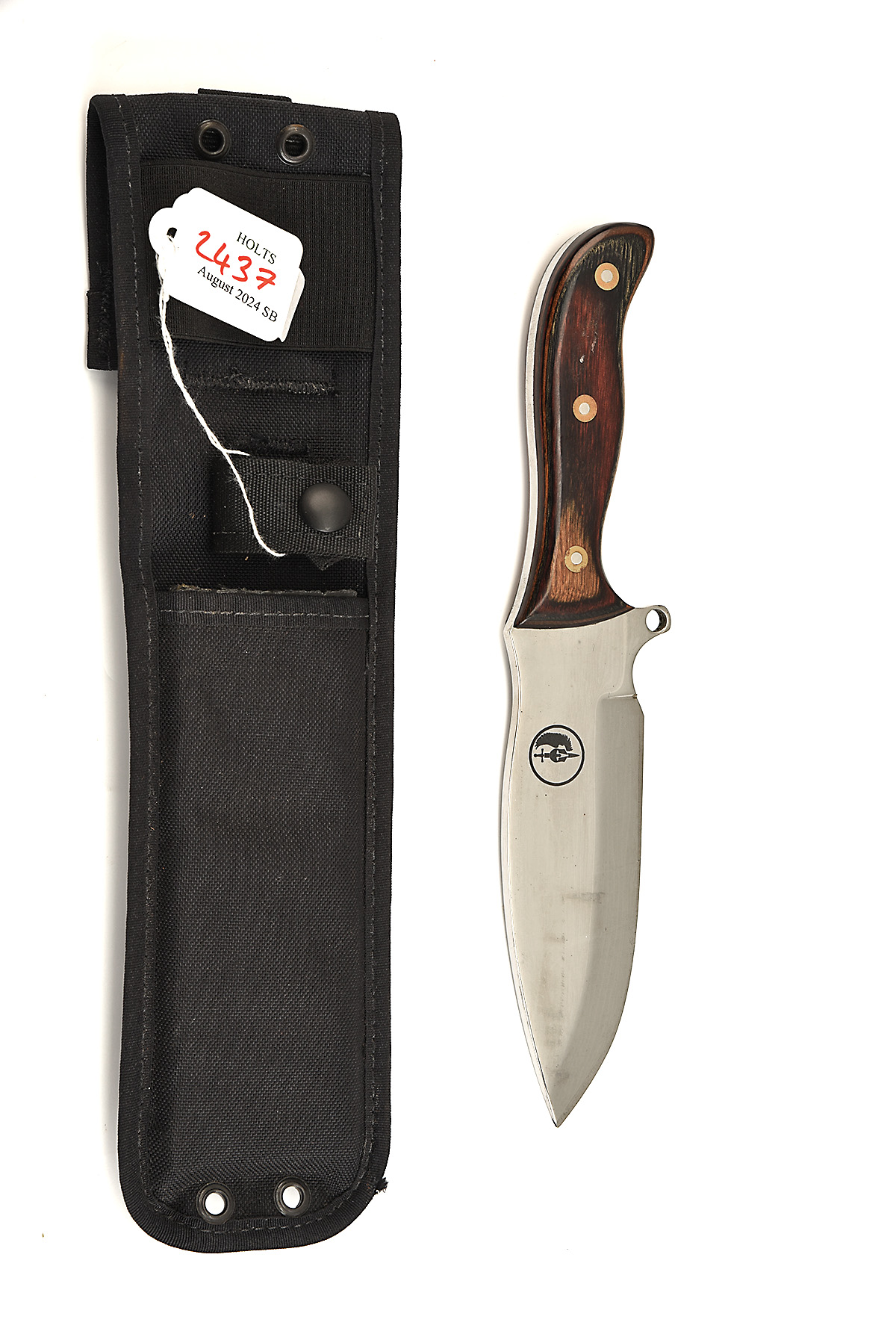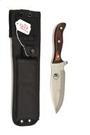 A 'SAMUEL STANIFORTH' OF SHEFFIELD DROP POINT HUNTING KNIFE IN NYLON SHEATH, approx 6in blade, full tang, laminate wood scale handle in black nylon sheath