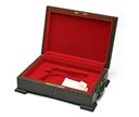 A MOULDED WOOD PRESENTATION CASE FOR A COLT COMBAT COMMANDER TYPE PISTOL, the exterior in mahogany effect finish with moulded brass effect handles, the interior lined in the continental fashion for the pistol, apparently unused, with key