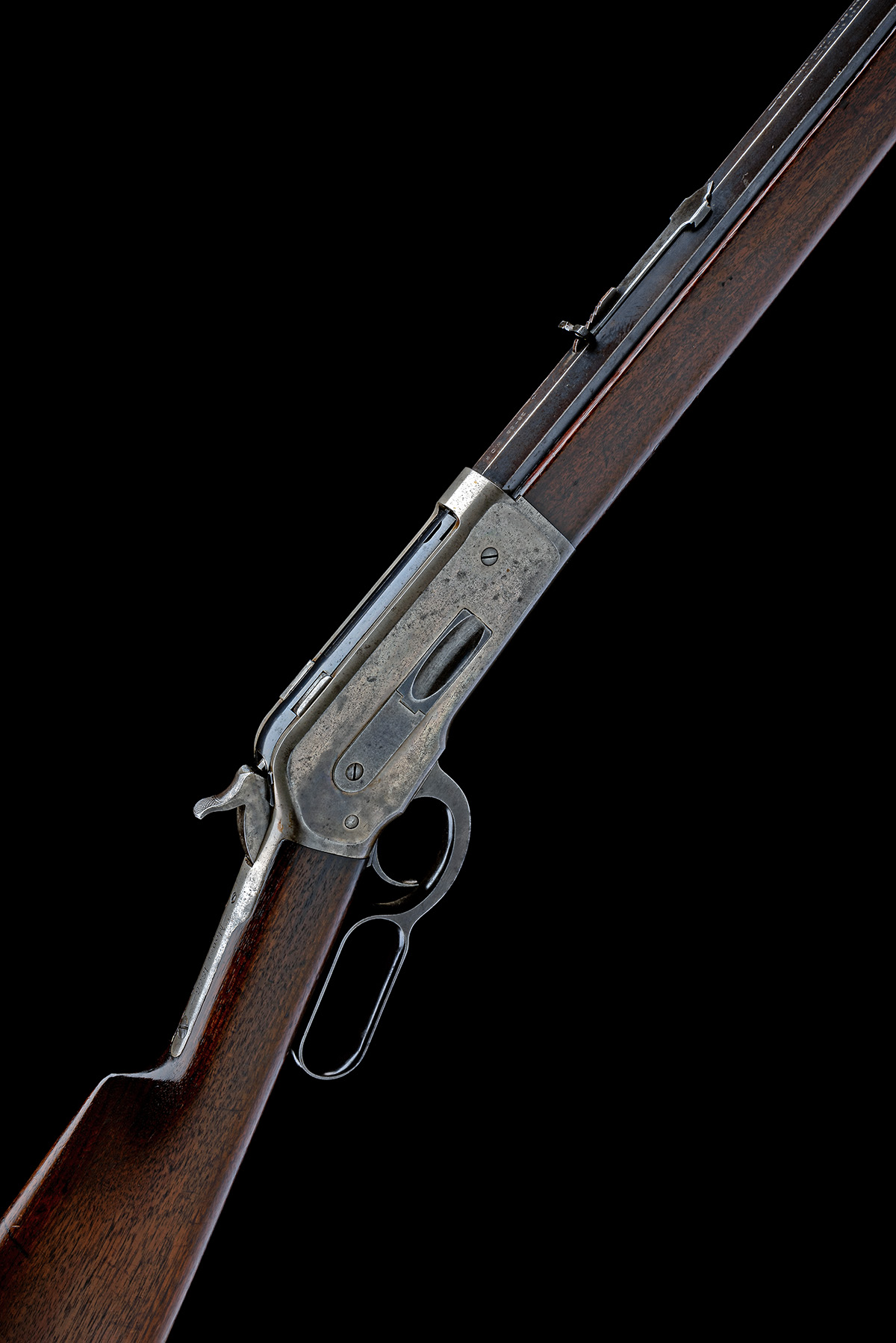 for 1889, with octagonal 26in. barrel (bluing original but thinned and fading), dove-tailed fore-sight, buckhorn rear-sight, the top-flat marked 'MANUFACTURED BY THE WINCHESTER REPEATING ARMS CO. NEW HAVEN CONN. U.S.A.' on two lines, calibre designation to breech-end, receiver with traces of colour, blued bolt, exposed hammer, top-tang marked 'MODEL 1886', walnut straight hand butt-stock with crescent heel-plate, plain trigger and finger-lever, walnut fore-end and full-length under-barrel magazine
