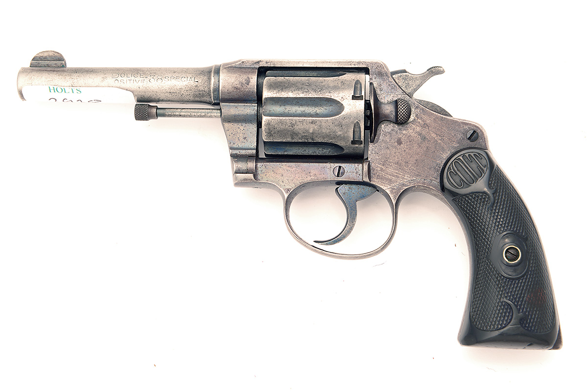 A .38 (SPL) SIX-SHOT REVOLVER SIGNED COLT, MODEL 'POLICE POSITIVE', serial no. 16109, circa 1909, with 4in. barrel, swing-out cylinder, solid frame and chequered hard-rubber grips (chipped, finish worn)