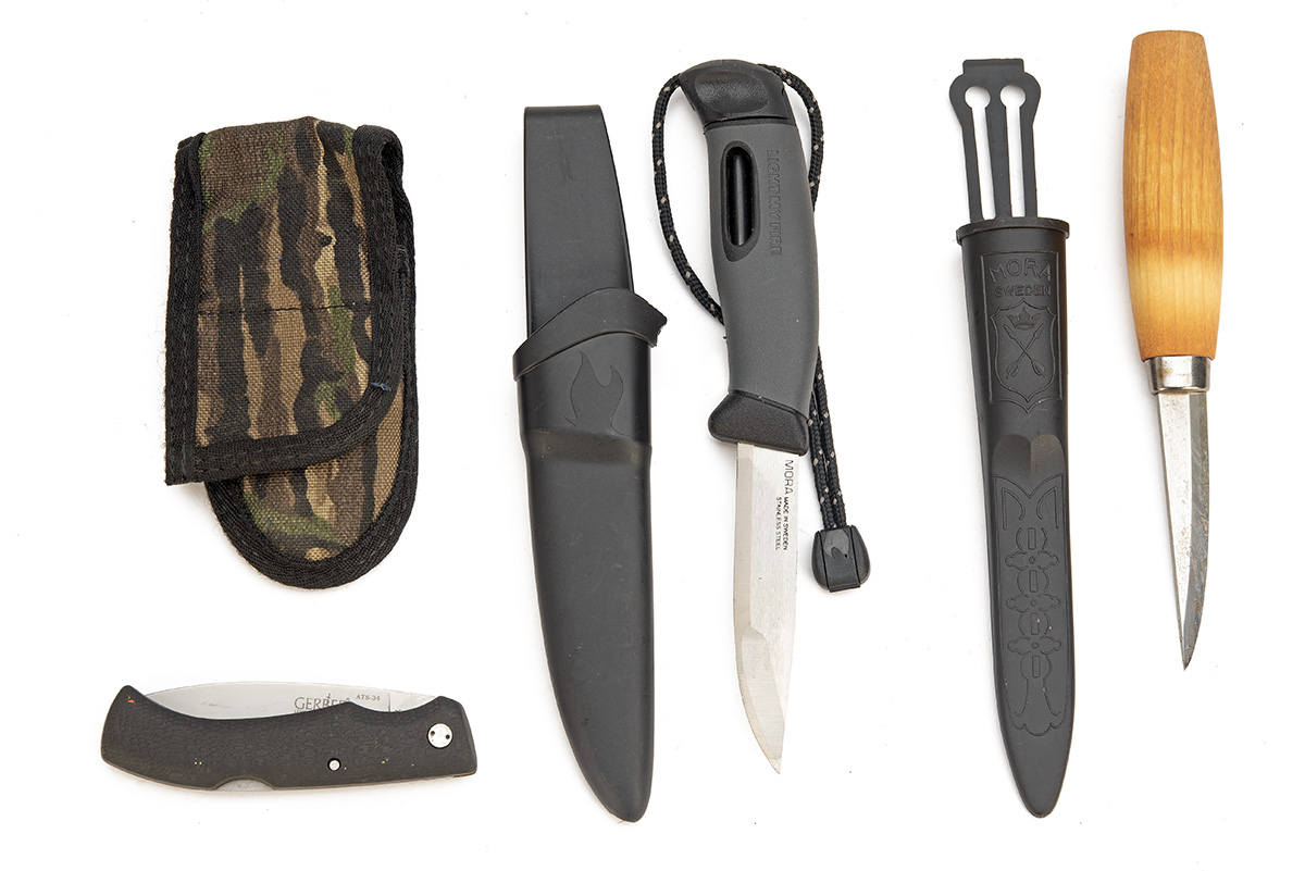 'MORA LIGHT MY FIRE' 'MORAKNIV 106' AND 'GERBER 625' OUTDOOR KNIFE IN SHEATH, approx. 3 1/2in. 12C27 SANDVIK stainless steel blade, half tang, textured bioplastic handle, integrated bayonet lock fire steel with bioplastic sheath