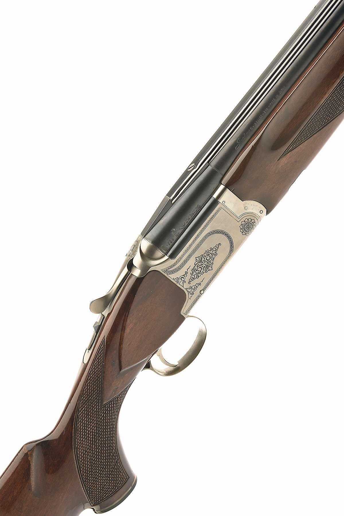 SHADOW 12-BORE SINGLE-TRIGGER OVER AND UNDER EJECTOR, serial no. S799887, dated 1979, 29 3/4in. nitro barrels with characteristic broad 13mm ventilated matt top-rib, 2 3/4in. chambers, bored approx. 1/2 and 3/4 choke, hold-open toplever, border and partial acanthus scroll engraving, 14 1/4in. pistolgrip stock including 5/8in. ventilated rubber recoil pad, weight 8lb. 2oz.