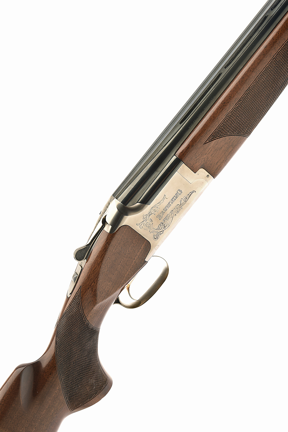 BROWNING ARMS CO. 12-BORE '325' SINGLE-TRIGGER OVER AND UNDER EJECTOR, serial no. 48838PN, for 1990, 28in. nitro barrels with 12mm ventilated matt top-rib, 2 3/4in. chambers, Invector multichoke (with spares), hold-open toplever, automatic safety with integral barrel-selector switch, adjustable gold-washed trigger (with spares), partially engraved with acanthus scrollwork, satin finish, 14 3/8in. pistolgrip stock including rubber recoil pad, weight 7lb. 7oz., in its makers cardboard carton with some accessories and paperwork