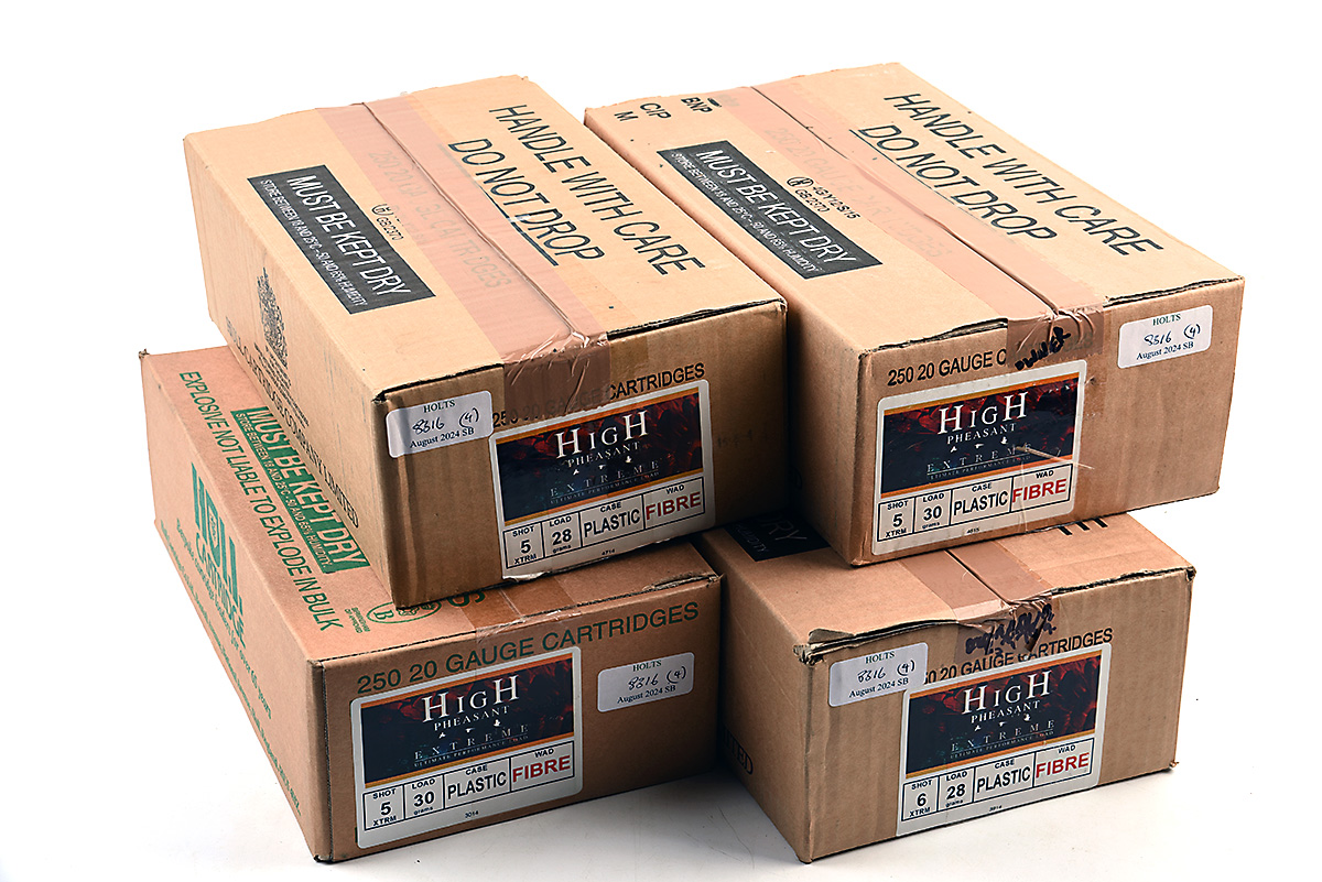 4 X SLABS OF 250 - 20-BORE 'HIGH PHEASANT' No. 5 30g PLASTIC FIBRE CARTRIDGES,