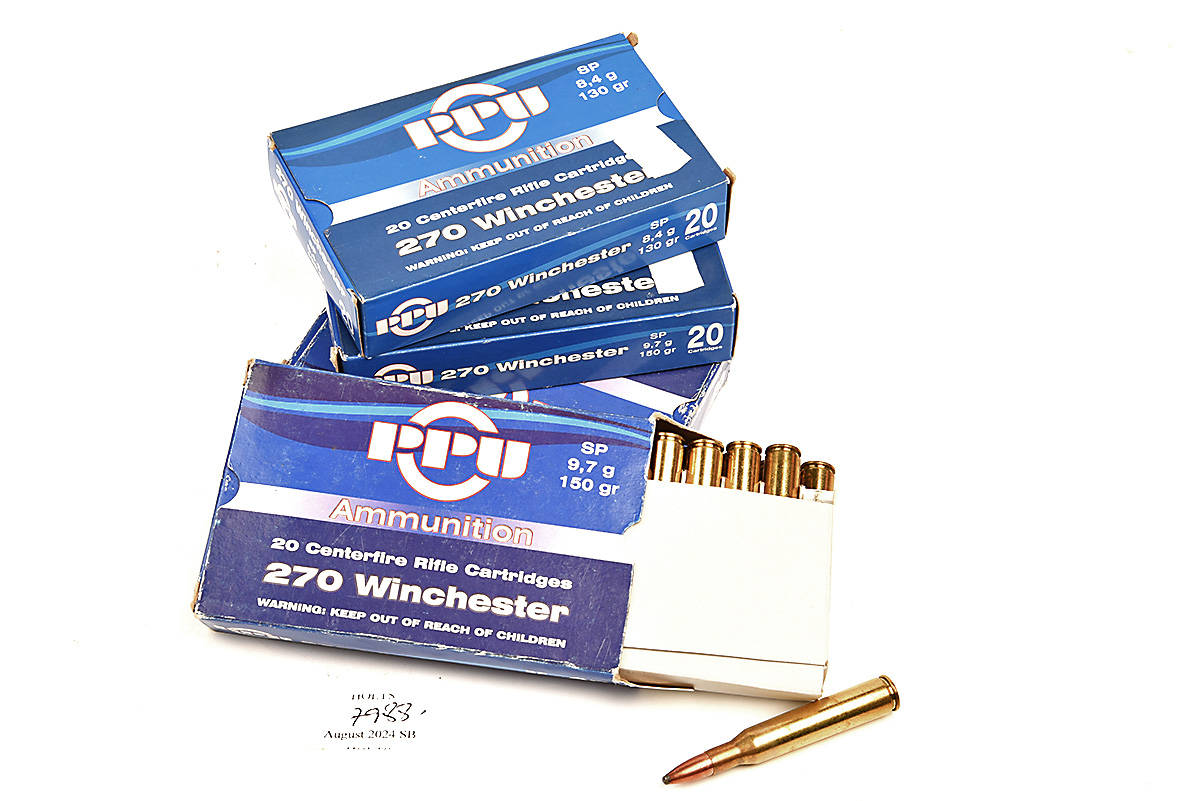 80 ROUNDS OF PPU .270 WIN 'SP 9,7G AMMUNITION, Please be advised that cartridges/ammunition, primers, primed cases, blanks and percussion caps CANNOT BE SENT ANYWHERE in the UK or EXPORTED OVERSEAS by POST or CARRIER. Due to this NATIONAL and INTERNATIONAL CARRIER rule, within 30 days of the sale date, please arrange collection with our shipping department from our Norfolk HQ. If payment and collection is not arranged within 30 days of the sale date, that will indicate that the items are not required and they will be disposed of.