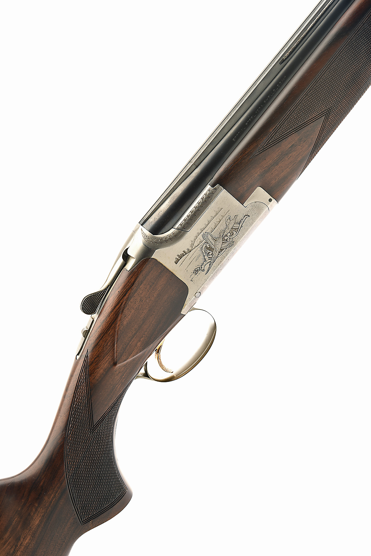 BROWNING ARMS COMPANY 12-BORE 'A3' SINGLE-TRIGGER OVER AND UNDER EJECTOR, serial no. 8H3PZ11634, for 1981, 27 1/2in. nitro barrels with 12mm ventilated matt top-rib, applied high visibility fore-sight, 2 3/4in. chambers, bored approx. 1/4 and 1/2 choke, hold-open toplever, manual safety with integral barrel selector, gold-washed trigger, brushed finish with engraved scenes of English partridge, pheasant and pointer, signed 'J.M. DEPREZ', 15in. pistolgrip stock including 7/8in. horn extension, weight 7lb. 8oz., in a leather case