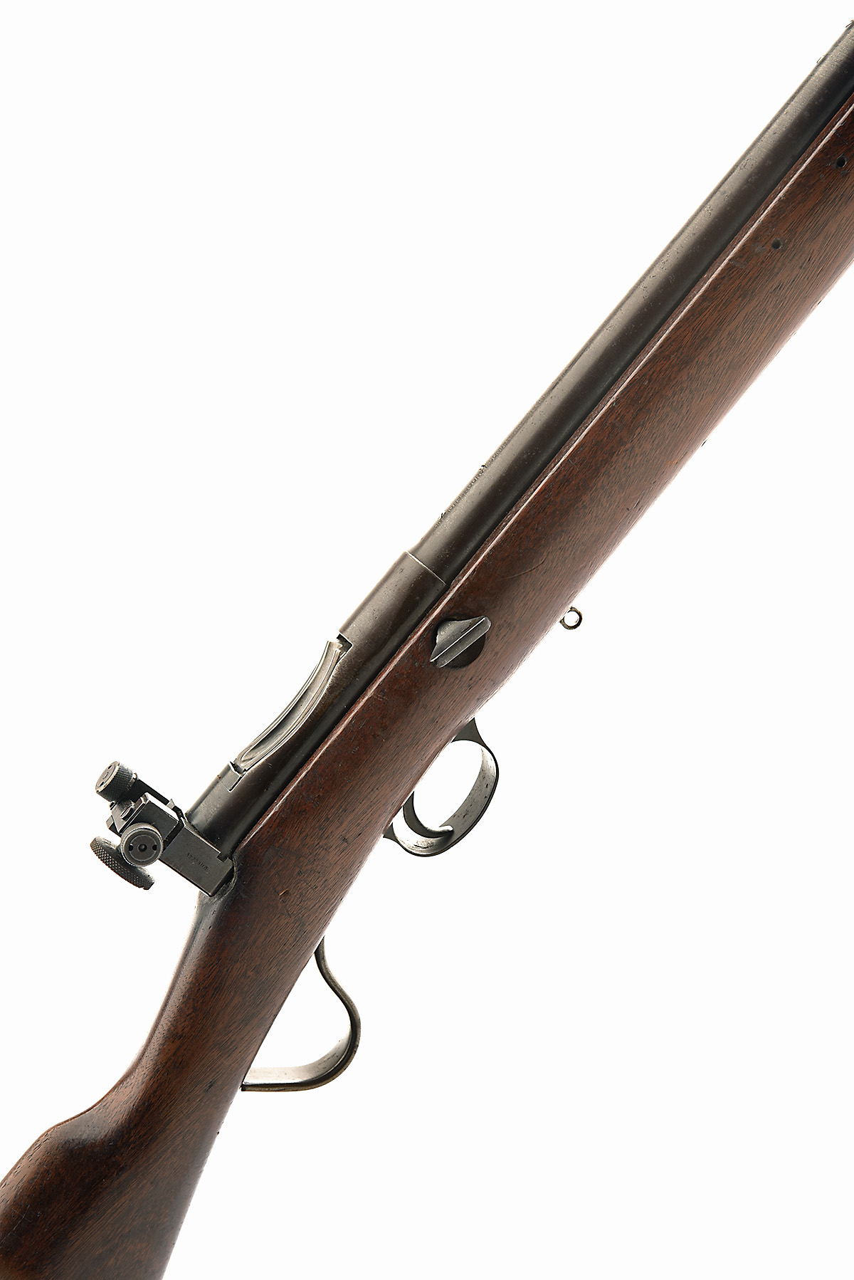 VICKERS ARMSTRONGS .22 L.R. 'EMPIRE MODEL' MARTINI-TYPE TARGET RIFLE, serial no. E2480, circa 1950, 30 1/2in. heavy nitro barrel, drilled for sight mount bases, the breech-end engraved 'VICKERS ARMSTRONG LONDON ENGLAND. EMPIRE MODEL. PAT NO. 41945?', AG Parker aperture fore-sight, receiver fitted with a rear-mounted BSA aperture rear sight P.Pat. 21332-06, quickly detachable action by side-mounted wingnut, colour-hardened feed ramp, blued finish, halfstock, sling eyes, 14 1/4in. pull