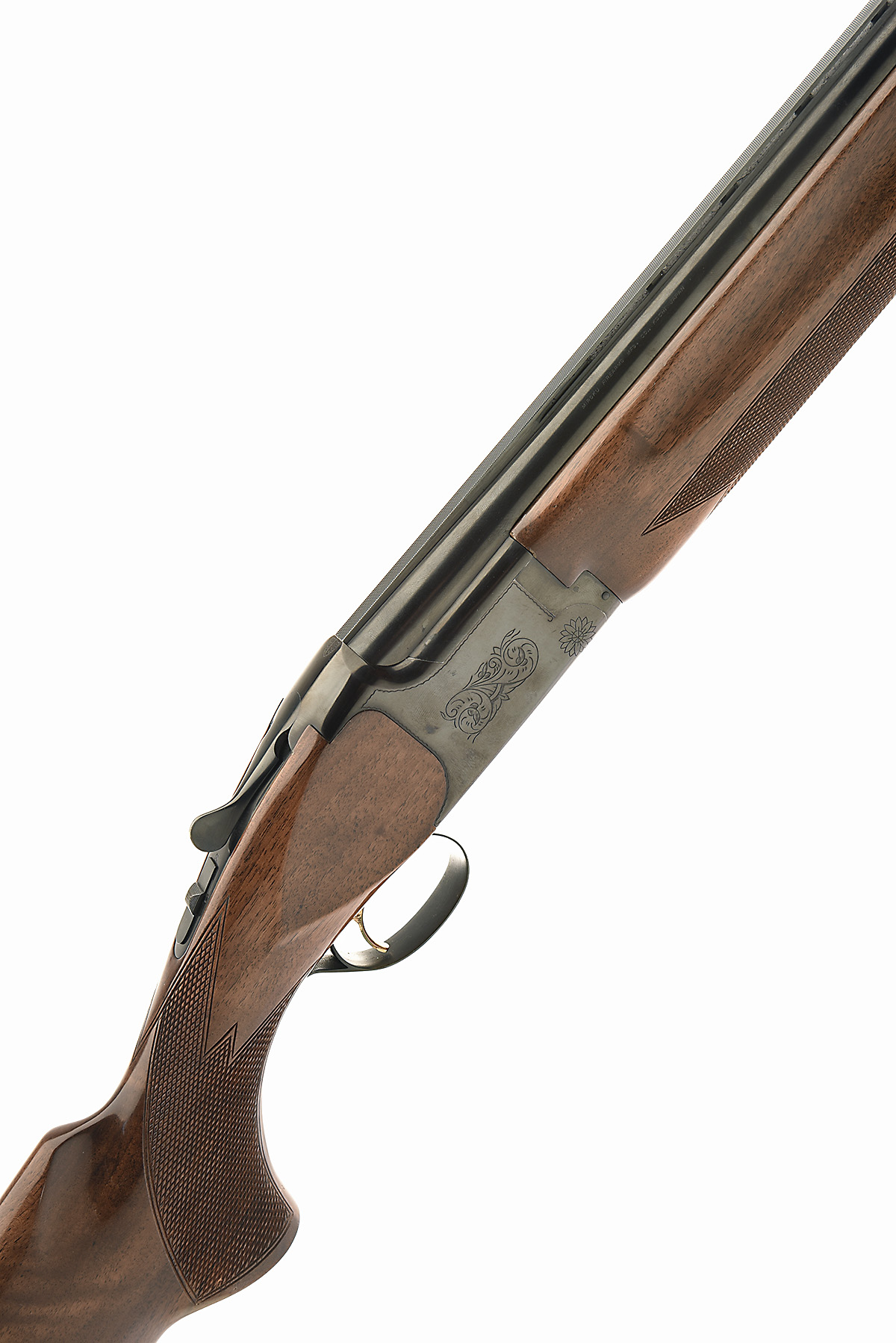 B.C. MIROKU 12-BORE SINGLE-TRIGGER OVER AND UNDER EJECTOR, serial no. 734638, circa 1976, 28in. nitro reproved barrels with 7mm ventilated matt top-rib, 2 3/4in. chambers, bored approx. true cyl. in both, hold-open toplever, manual safety with integral barrel selector, gold-washed trigger, partial engraving, black finish, 14 3/8in. pistolgrip stock including Miroku buttplate, weight 7lb. 9oz., in a wood case