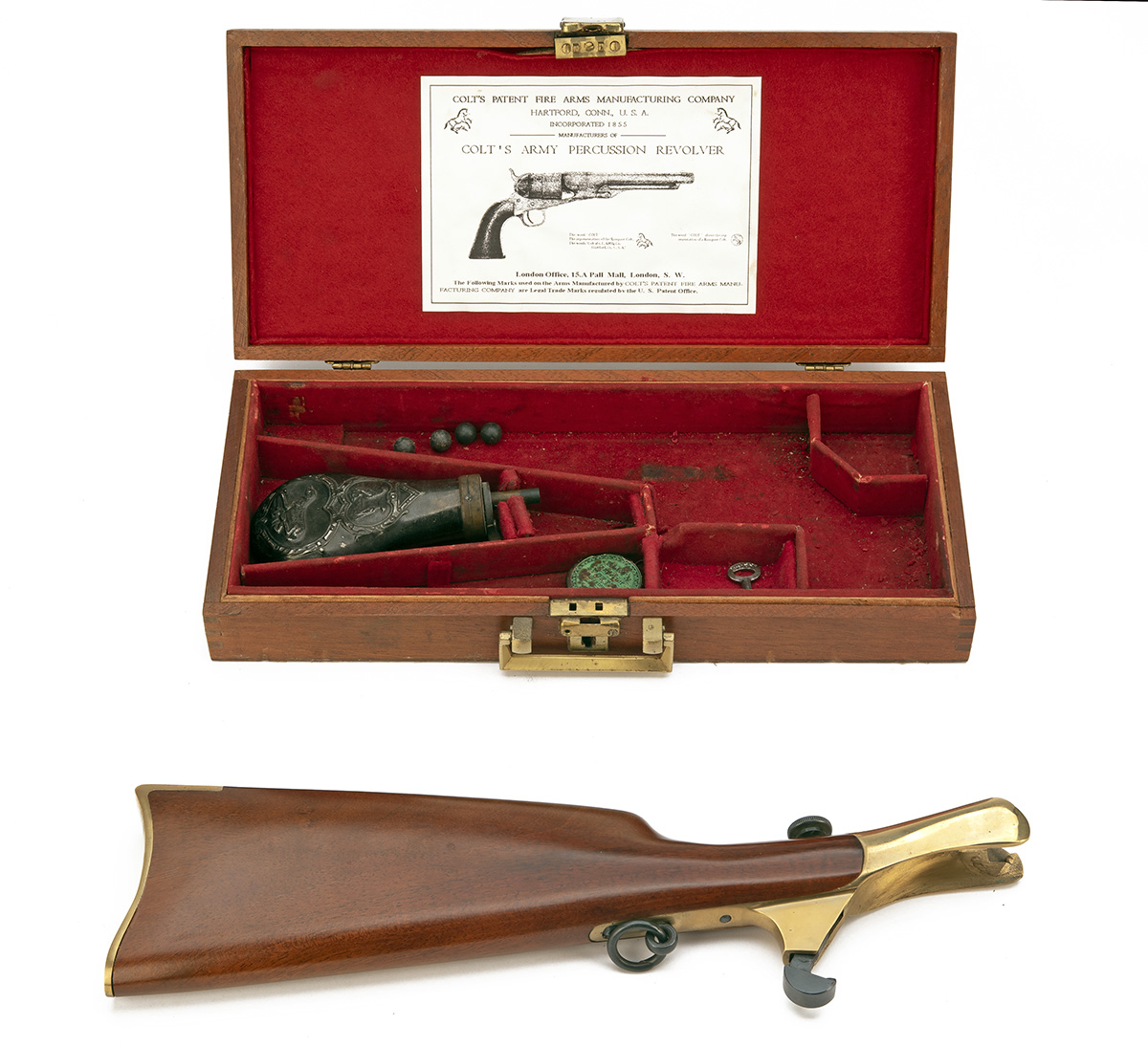 A REPRODUCTION SHOULDER-STOCK AND CASE FOR THE M1860 COLT ARMY REVOLVER,
