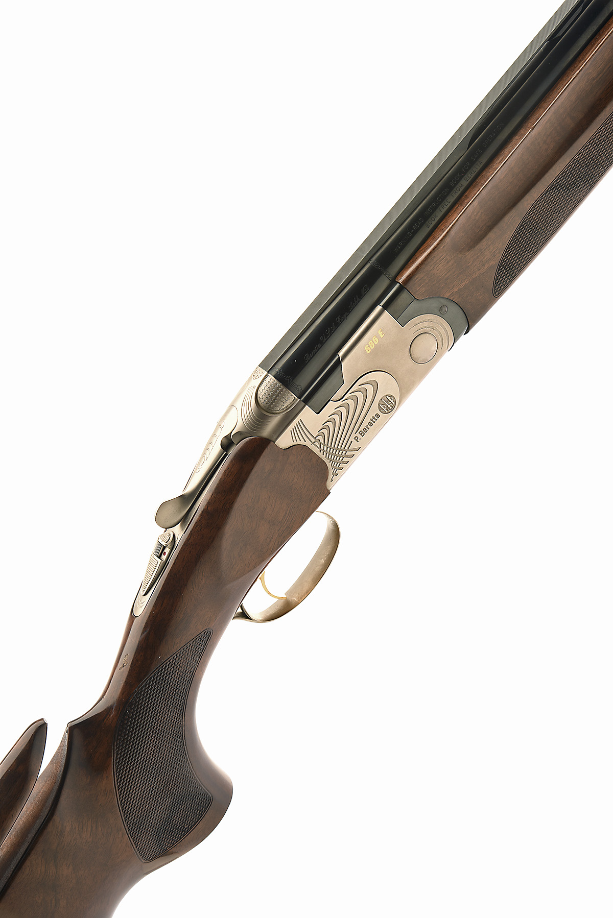 P. BERETTA 12-BORE (3IN.) 'MODEL 686E SPORTING' SINGLE-TRIGGER OVER AND UNDER EJECTOR, serial no. N95163B, for 2001, 29 7/8in. nitro barrels with 9mm ventilated matt top-rib, 3in. chambers, multichoke (no spares), hold-open toplever, manual safety with integral barrel-selector switch, gold-washed trigger, action with geometric designs, and gold-inlaid model designation and makers name, satin finish, 14 1/2in. figured pistolgrip stock with adjustable comb, including rubber recoil pad, weight 8lb. 3oz., in a slip