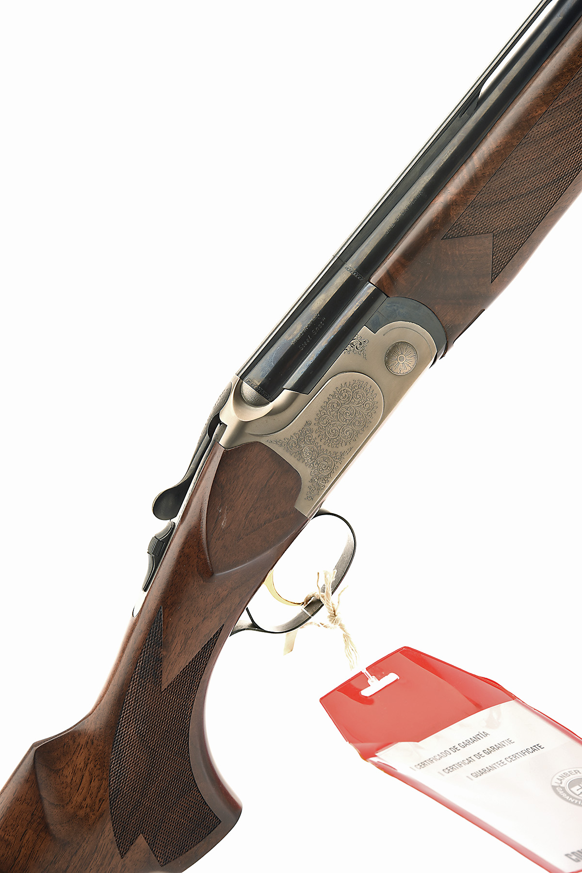 LANBER 12-BORE 'SPORTING-LUX' SINGLE-TRIGGER OVER AND UNDER EJECTOR, serial no. 13-03-01467-10-12-76, dated 2010, 28in. nigh performance steel proof nitro barrels, 3in. chambers, multichokes (no spares), hold-open toplever, manual safety with integral barrel selector switch, gold-washed adjustable trigger, partial acanthus scroll engraving, 15in. pistolgrip stock including 5/8in. rubber recoil pad, weight 7lb. 13oz.