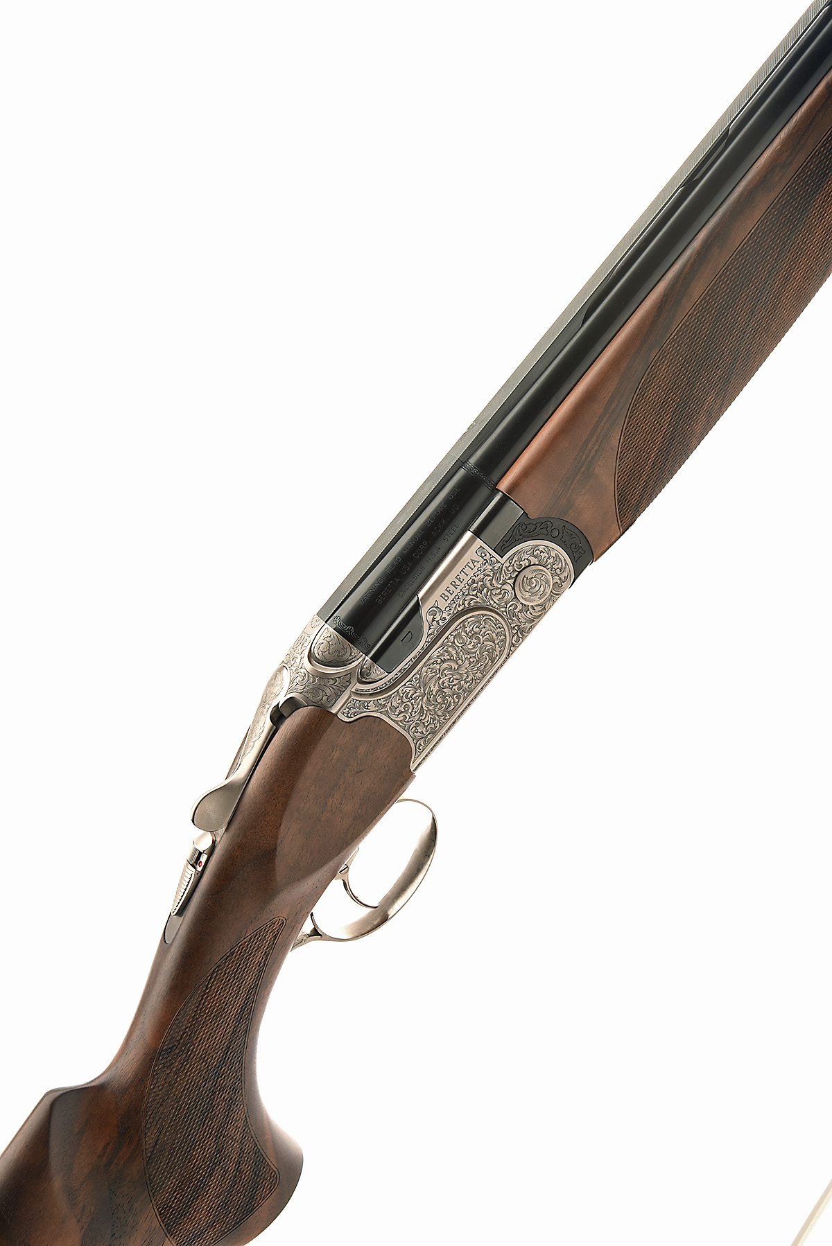 BERETTA 12-BORE '695' SINGLE-TRIGGER OVER AND UNDER EJECTOR, serial no. U71192S, dated 2012, 30in. nitro barrels with ventilated mid-rib and 9mm ventilated matt top-rib, 3in. chambers, Beretta 'Optima' multichokes (with spares), hold-open toplever, manual safety with integral barrel selector switch, adjustable single trigger, bold acanthus scroll engraving set against a matt background, silver finish, 14 1/2in. pistolgrip stock including Beretta recoil pad, weight 7lb. 12oz., in its makers universal case