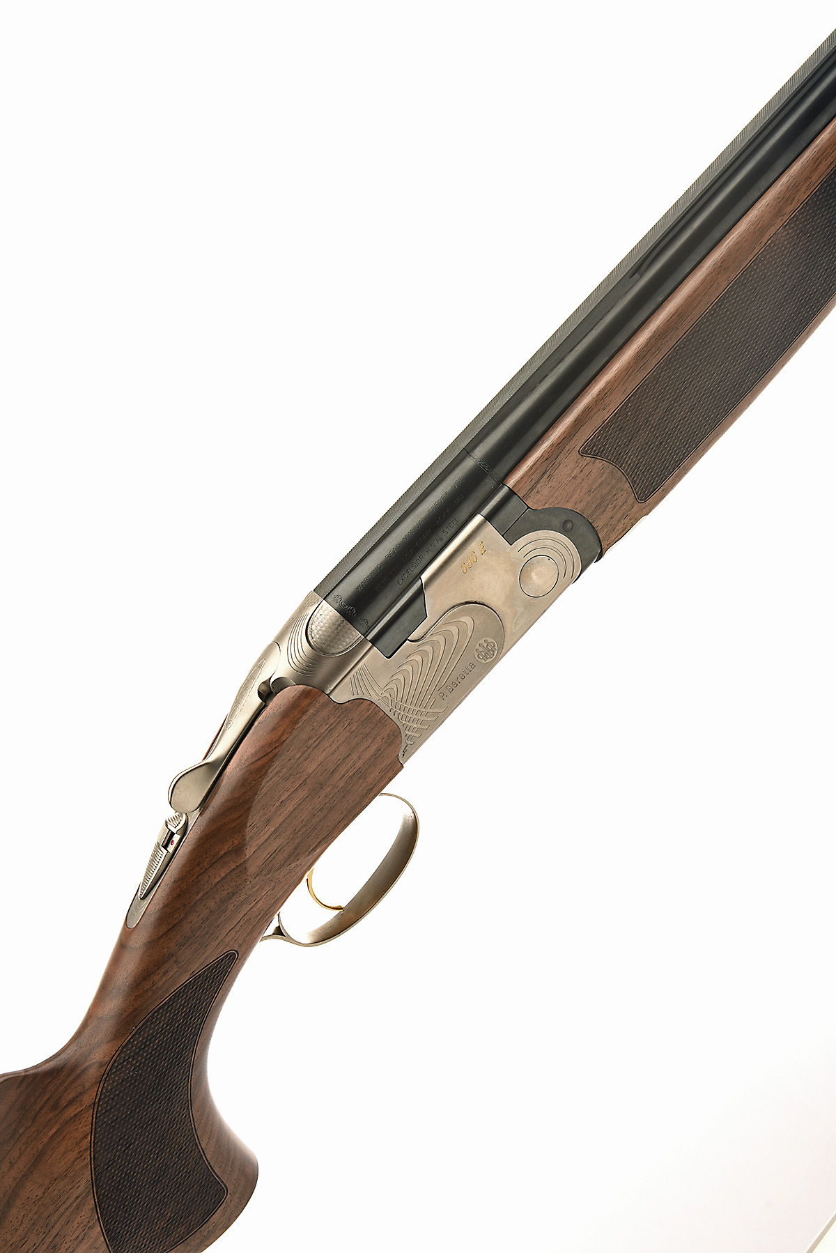 P. BERETTA 12-BORE '686E' SINGLE-TRIGGER OVER AND UNDER EJECTOR, serial no. Z37829S, dated 2014, 30in. nitro barrels with ventilated mid-rib and 9mm ventilated matt top-rib, 3in. chambers, multichokes (with spares), hold-open toplever, manual safety with integral barrel selector switch, gold-washed single trigger, satin finish with geometric designs,14 3/4in. pistolgrip stock including 3/4in. Beretta recoil pad, weight 7lb. 13oz., in its makers universal case