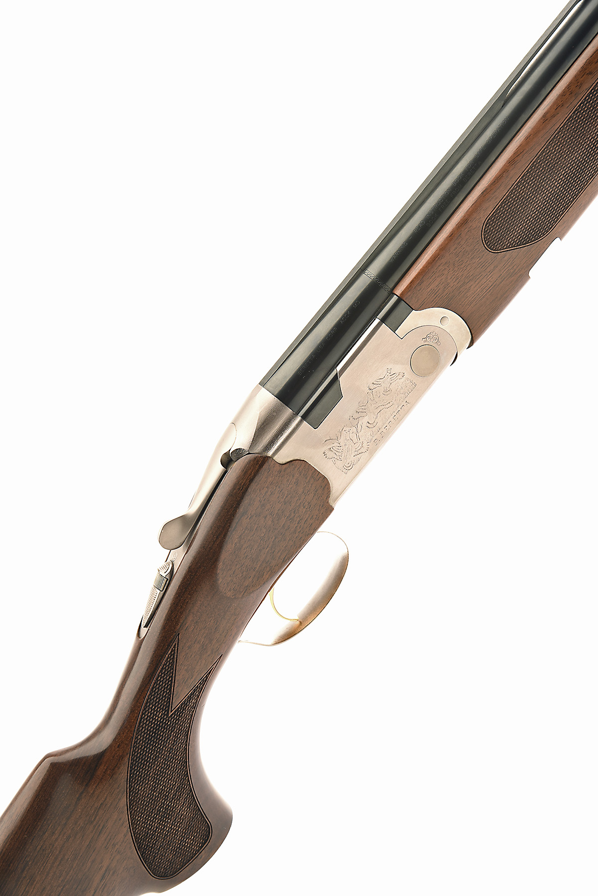 P. BERETTA 12-BORE 'WHITEWING' SINGLE-TRIGGER OVER AND UNDER EJECTOR, serial no. P66328B, dated 2003, 28in. nitro barrels with no mid-rib and 6mm ventilated matt top-rib, 3in. chambers, multichokes (no spares), hold-open toplever, automatic safety with integral barrel selector switch, game scene engraving, 14 1/2in. pistolgrip stock including 3/8in. rubber recoil pad, weight 6lb. 15oz.