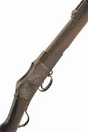 * A .577/450 Martini Henry Rifle, MARK II TYPE, UNSIGNED, no visible serial number, circa 1880s, with 32 1/2 in. sighted barrel, large cocking indicator, small lever, walnut stock, barrel bands, the front with bayonet lug, worn, all metalwork pitted and heavily rusted leaving no indication of any markings, clearing rod absent, 49 1/2 in. overall length