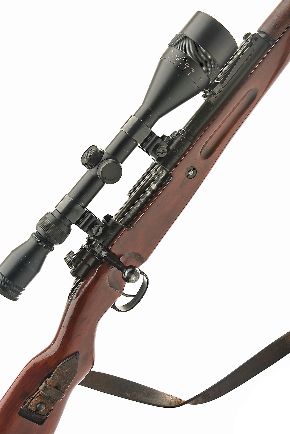 MAUSER 7.62mm 'MOD 98' BOLT-MAGAZINE SERVICE RIFLE, serial no. 1529, circa 1938, 23 3/4in. nitro barrel, ramp-mounted fore-sight, tangent rear-sight, fitted with a Tasco 3-9x50 telescopic sight, manual flag safety, detachable floorplate, full-length stock, side leather sling