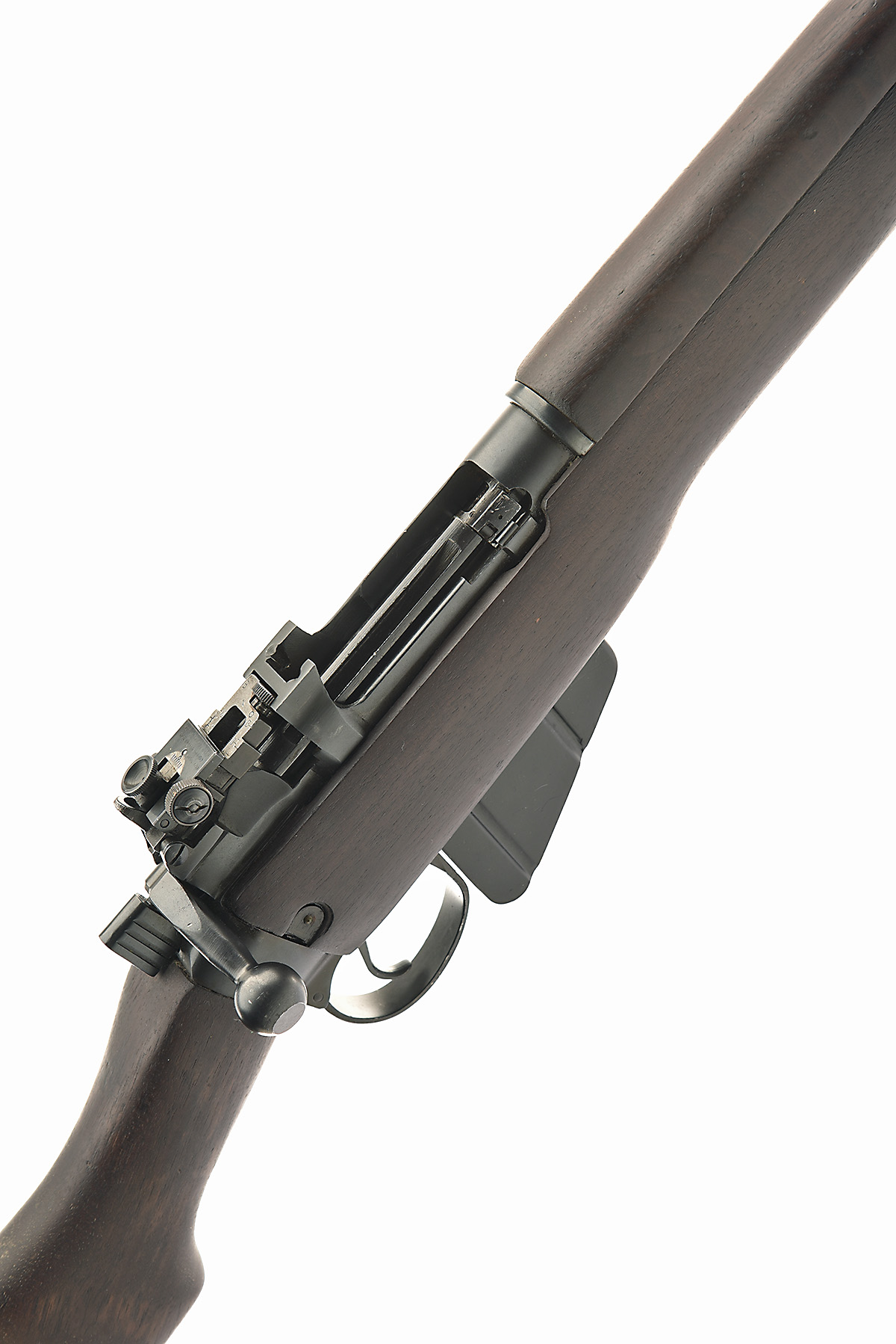 LONG BRANCH .303 'No 4 MK I*' BOLT-MAGAZINE SERVICE RIFLE, serial no. 92L7893, circa 1940, 25in. nitro barrel, ramp-mounted fore-sight, fold rear battle-sight, manual safety, detachable box magazine, full-length stock, brass butt plate with trap door, sling swivels