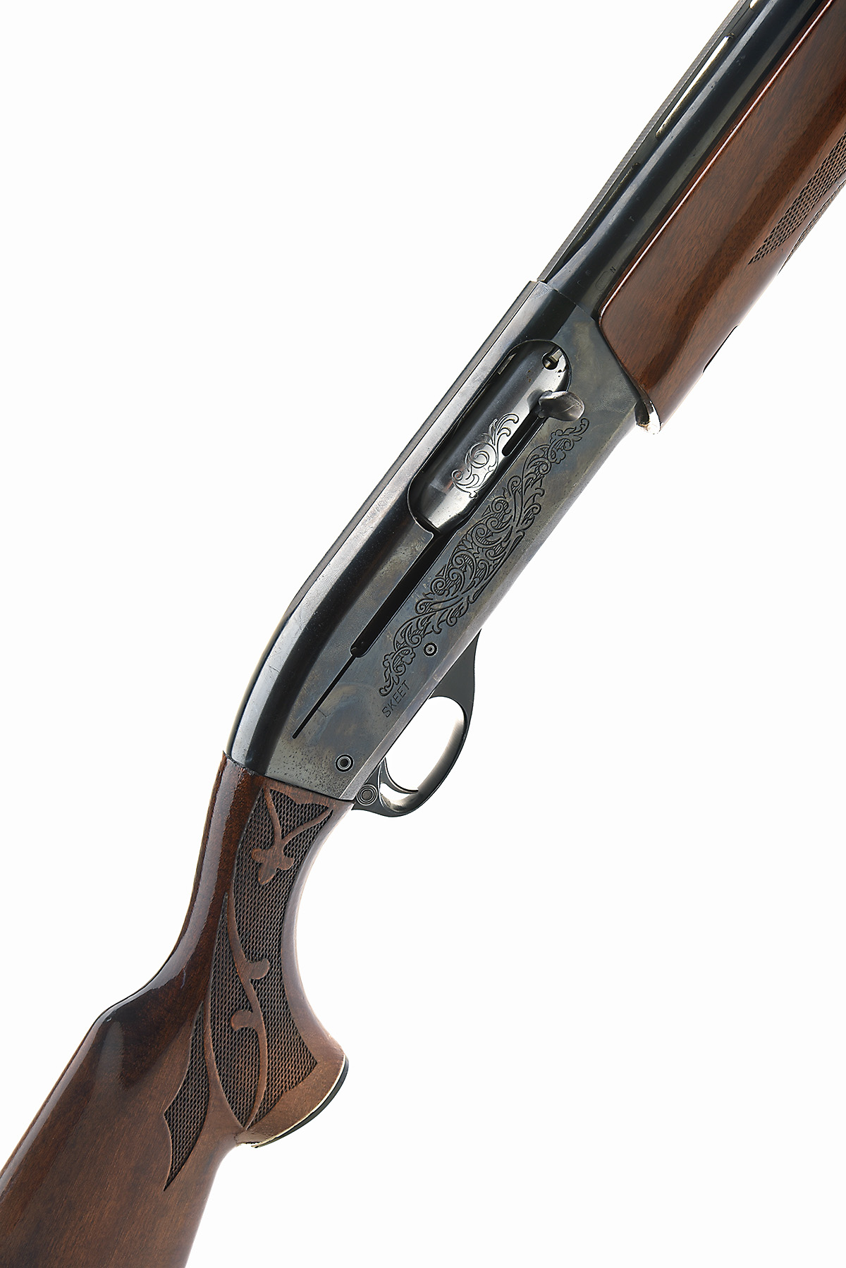 REMINGTON 12-BORE 'MODEL 1100 - SKEET' SEMI-AUTO SHOTGUN, serial no. N490654V, for 1981, restricted magazine, 28in. nitro reproved barrel (in 2024), with 7mm ventilated matt rib, 2 3/4in. chamber, bored approx. 1/2 choke, action with fracture to rear of bolt slide, manual push-button safety, blacked action with acanthus scroll engraving, 14 3/4in. ornately chequered pistolgrip stock including ventilated rubber recoil pad