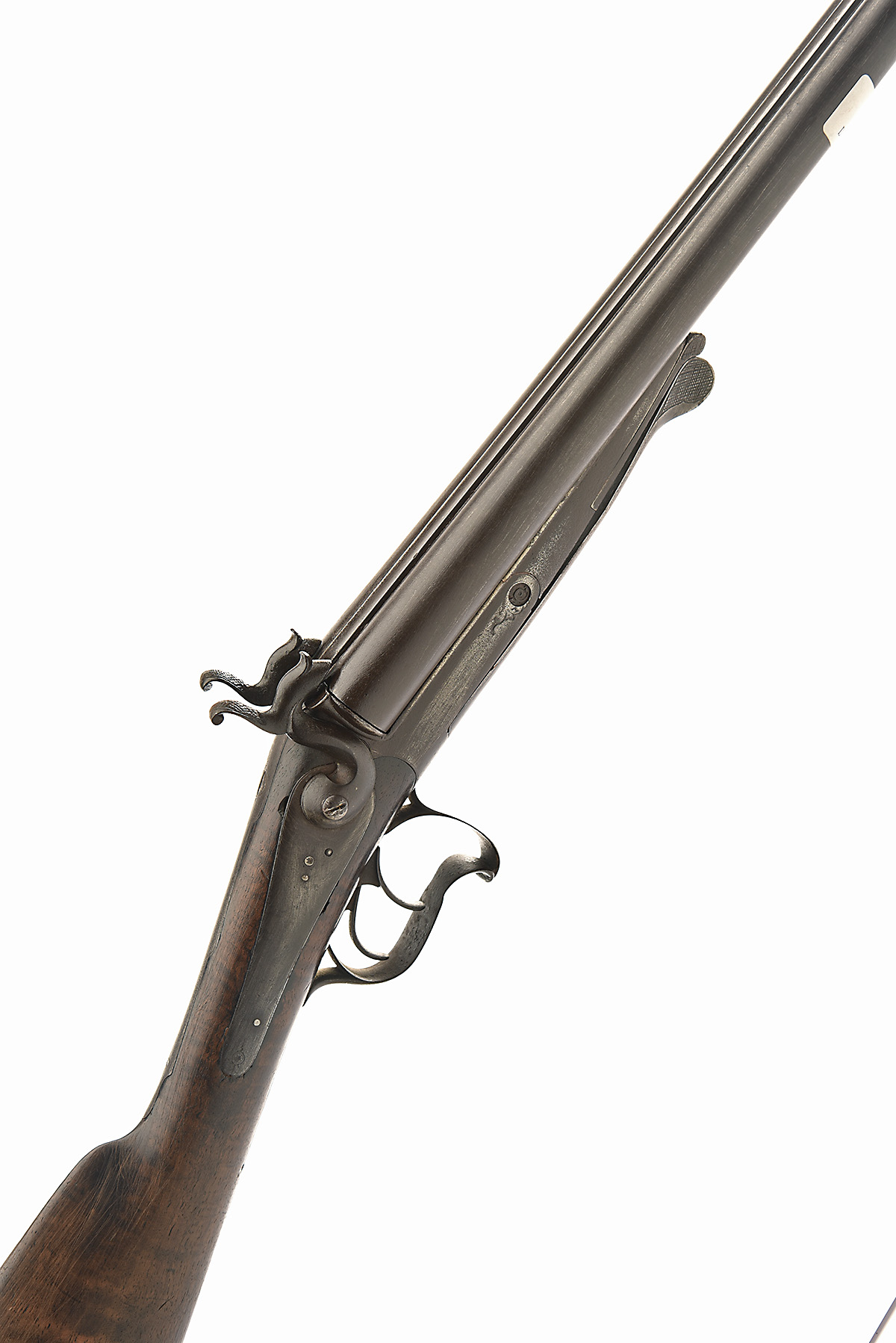 * A 16-BORE PINFIRE DOUBLE-BARRELLED SPORTING-GUN, UNSIGNED, serial no. 978, circa 1870, with 30 1/2in. barrels (left holed in two places), plain action with forward-facing Lefaucheux swing under-lever, back-action locks, walnut butt-stock and captive iron fore-end