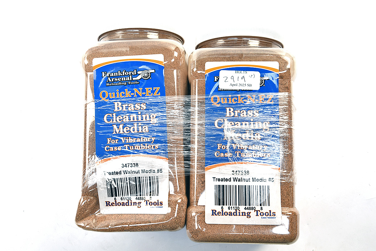 TWO UNUSED 'FRANKFORD' QUICK-N-EZ BRASS CLEANING TREATED WALNUT MEDIA, No. 347338, for vibratory case tumblers (2)