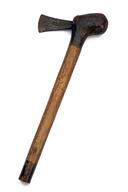 AN AFRICAN TRIBAL SPEAR AND HAND-AXE/ADZE, circa early 20th Century, probably west central Africa, with hand-forged blades, the spear with 10 in. blade tang-mounted with spiral iron binding, 40 in. overall length, the adze with 3 in. steel blade in counter-weighted stained wooden haft, 14 1/2 in. overall length