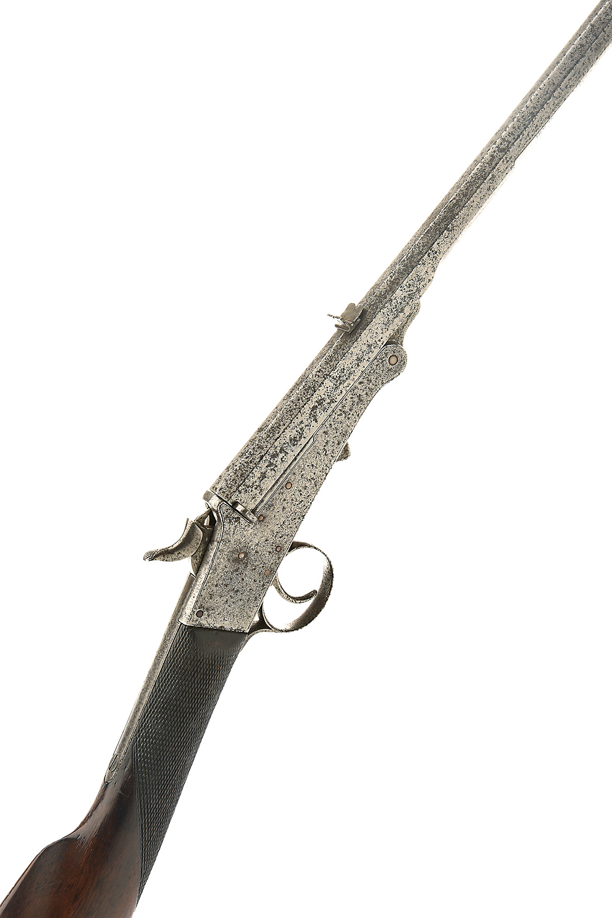 A .300 (ROOK) TRANTER'S PATENT ROOK & RABBIT-RIFLE, UNSIGNED, serial no. 30821, circa 1900, with octagonal 21in. sighted barrel heavily cleaned of finish, Tranter patent action also cleaned and with push-button barrel lock and manual extraction, central hammer and chequered walnut butt-stock with no provision for fore-end,