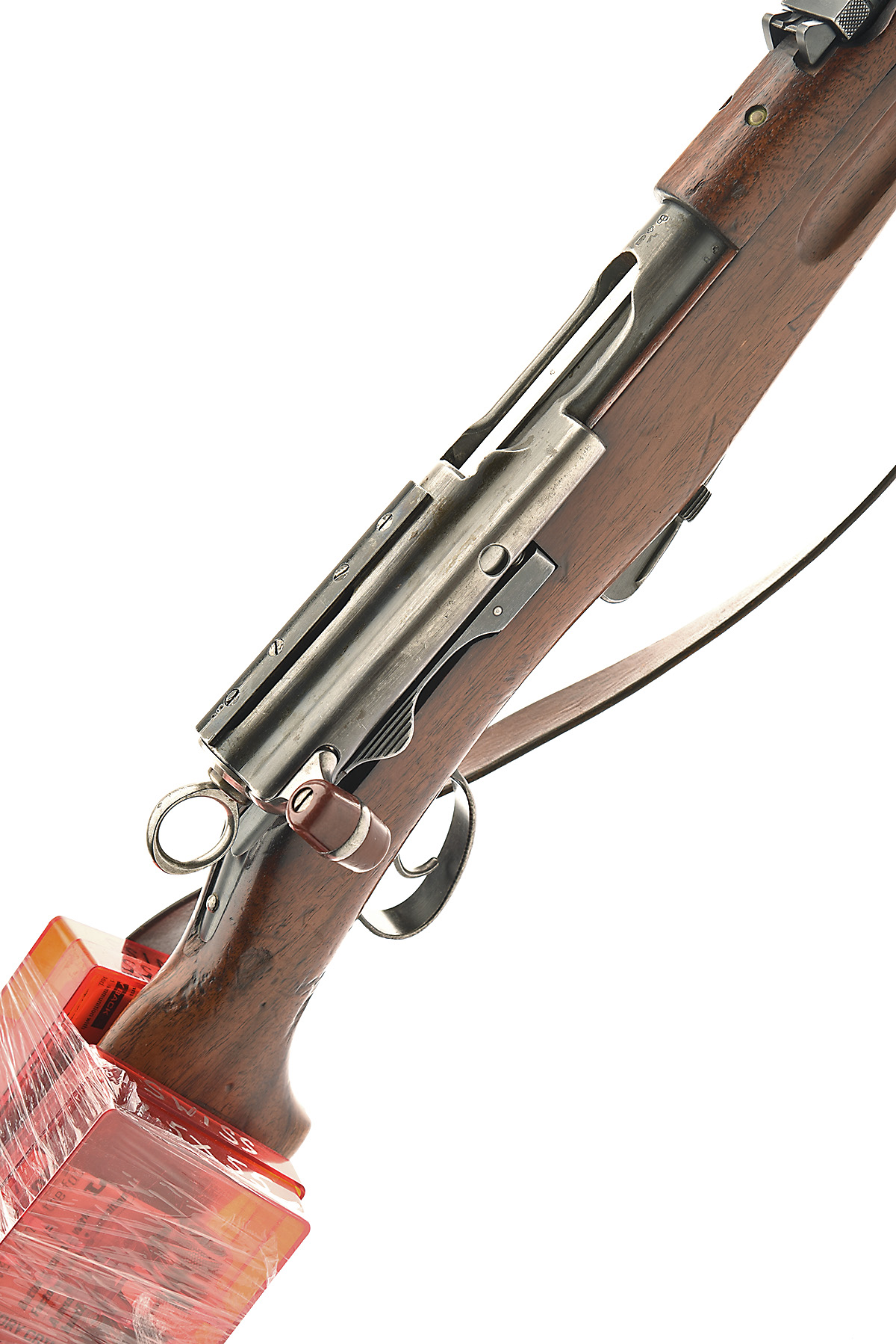 SCHMIDT RUBIN 7.5x55mm SWISS 'MODEL 1911 CARBINE' STRAIGHT-PULL BOLT-MAGAZINE SERVICE CARBINE, serial no. 46047, for 1916, 23 1/4in. nitro reproved barrel (in 2010), block and blade fore-sight with side protectors, adjustable tangent rear sight, receiver fitted with a sight rail, straight pull action, detachable box magazine, three-quarter length stock, 12 1/2in. pull including steel buttplate, leather sling, together with two sets of loading dies
