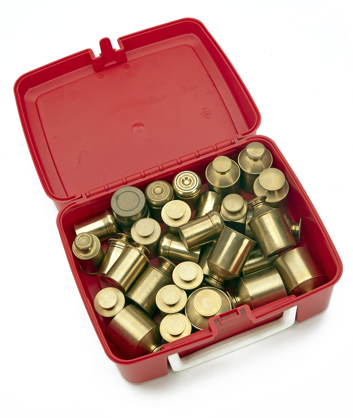 THIRTY ONE VARIOUS BRASS OIL BOTTLES AND POTS, comprising of large, medium, small round oil bottle and pots, 1 small square in box