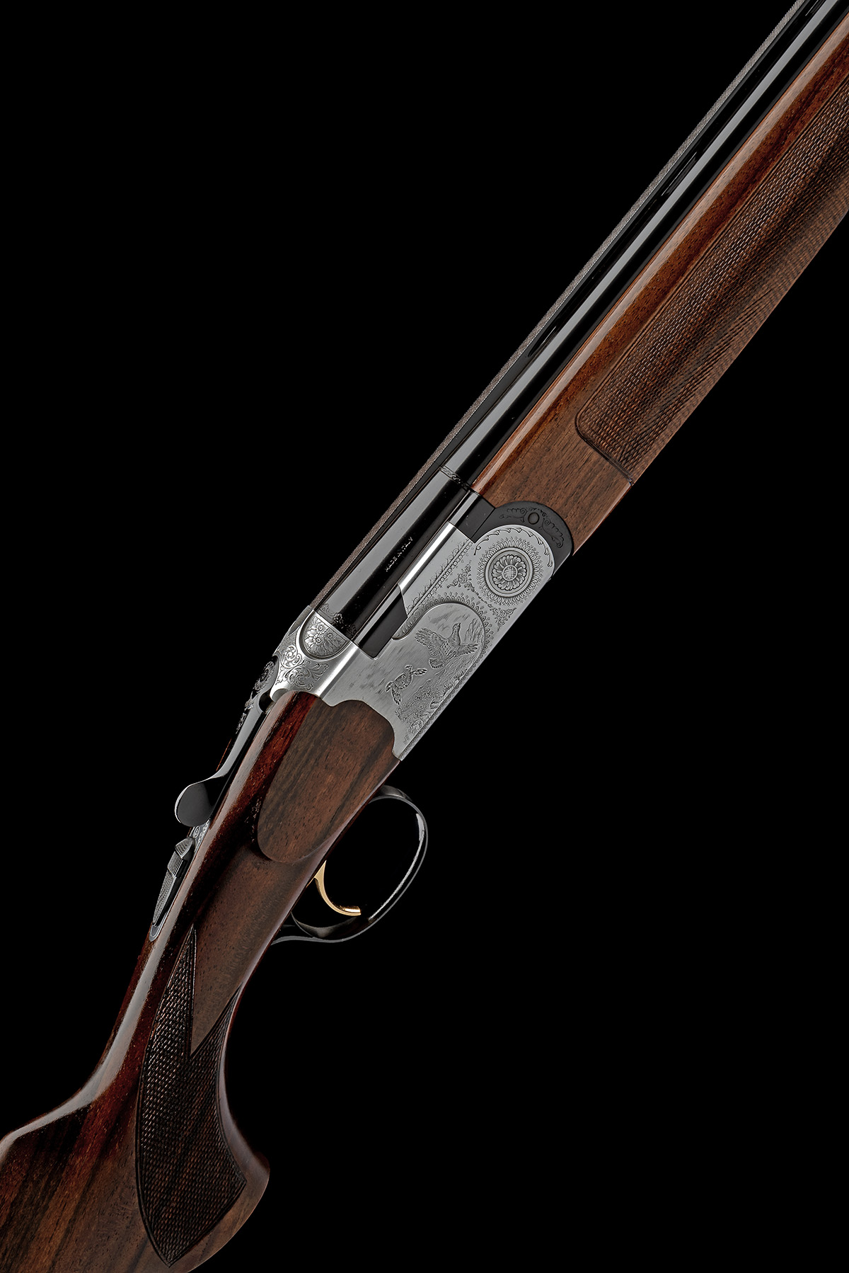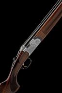 for 1989, 28in. nitro barrels with 6mm ventilated matt top-rib, 2 3/4in. chambers, bored approx. imp. cyl. and 1/4 choke, hold-open toplever, automatic safety with integral barrel selector switch, border and scroll engraving with scenes of duck, woodcock and French partridge, bright and blue finish, 14 5/8in. pistolgrip stock including buttplate, weight 5lb. 15oz.