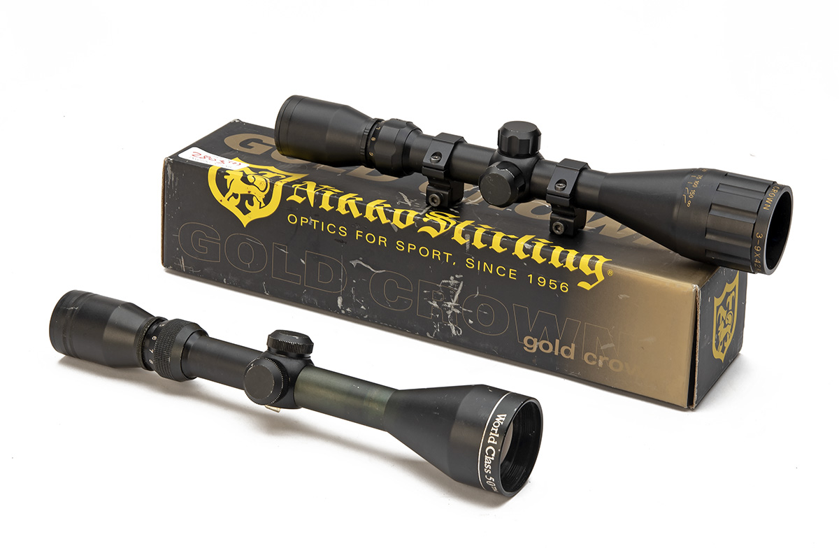 A 'TASCO 3-X50 AND A 'NIKKO STIRLING GOLD CROWN 3-9X42AO' RIFLE SCOPE, (2)
