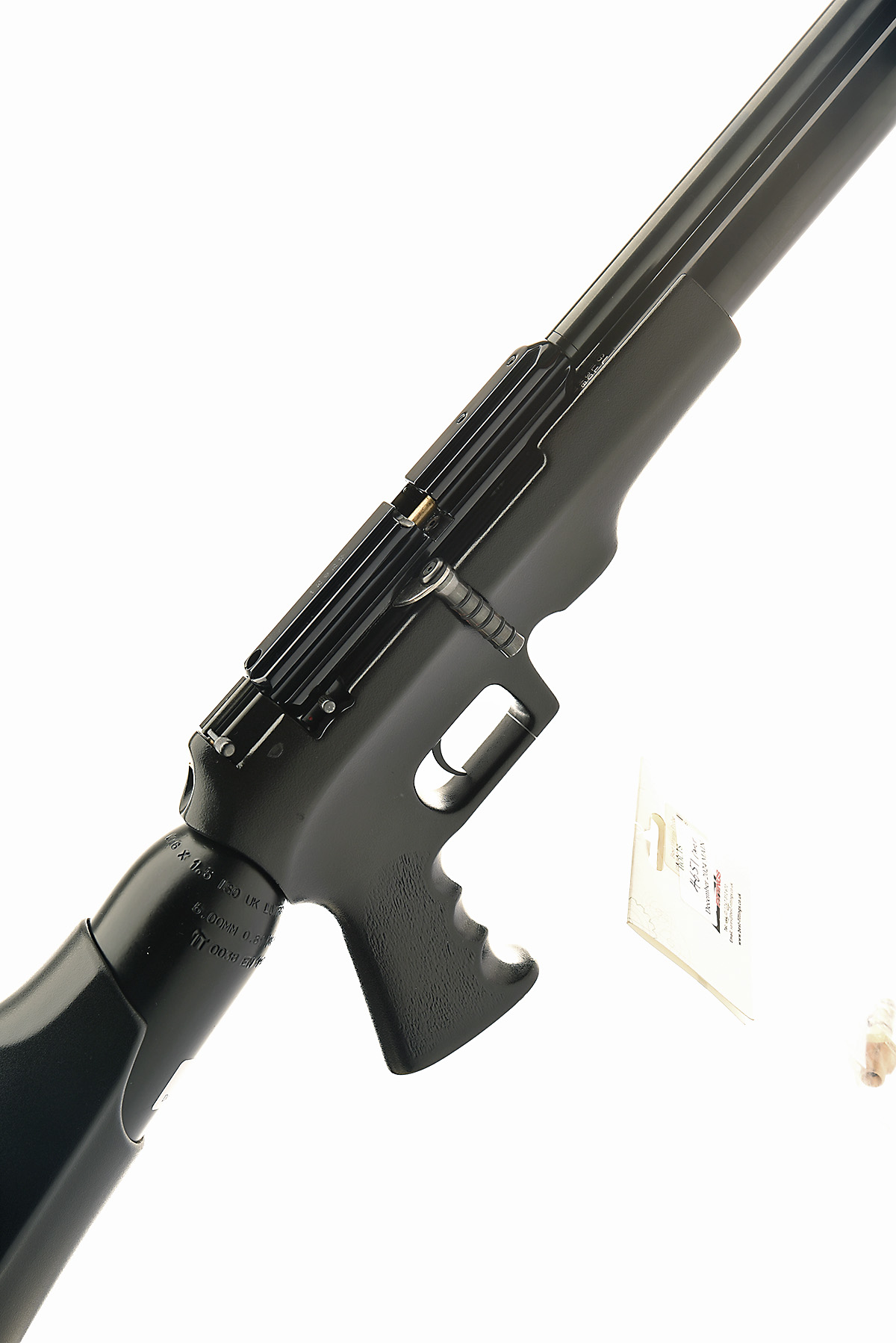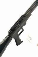 AN FAC-RATED .22 LOGUN GLADIATOR MK2 PRE-CHARGED PNEUMATIC AIR-RIFLE, serial no. 12929, with 30 1/2in. barrel including detachable sound moderator, side-lever cocking action with provision for magazine (magazine absent), moulded synthetic receiver with integral grip, large capacity air-reservoir forming the butt-stock with over-moulded synthetic heel and cheek-piece and additional front-mounted under-barrel air-reservoir with gauge, recently serviced and tested, with filling adaptor plus moderator
